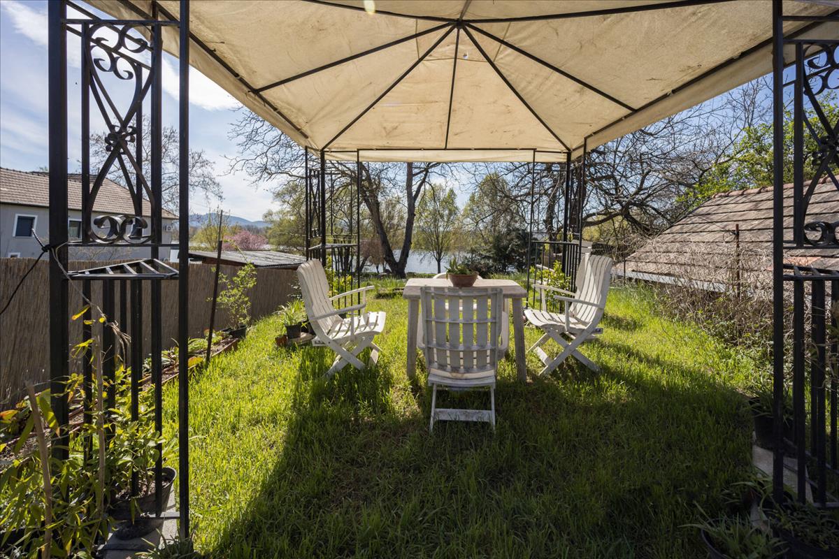 A Duna-parti sétányon Szob belvárosában vált eladóvá egy gyönyörű panorámával rendelkező, 549 négyzetméteres összközműves, önálló helyrajzi számon lévő telekegyüttes, ami nem csak lenyűgöző kilátást nyújt, hanem számos lehetőséget rejt magában, hiszen található rajta egy felújítandó, átalakítható, felfele bővíthető, 121nm épület, egy hangulatos kerti kiülő, valamint egy pince!A közvetlen a Duna-parton elhelyezkedő telekegyüttes a Széchenyi sétányról és az Árpád útról is nyílik, és a vízi sportok kedvelőinek illetve horgászoknak is kiváló adottságokkal rendelkezik. a hangulata magával ragadó, hiszen szinte bárhol állunk a telken, gyönyörű elvehetetlen panoráma tárul elénk. a kert alkalmas akár csónak tárolásra is, továbbá található rajta egy pince ami felett a hangulatos kerti kiülő helyszíne lehet a nyári sütögetéseknek, valamint a pihenésnek is, de a 10 m-re lévő közösségi stég is kiváló horgászási vagy napozási lehetőséget biztosít.
