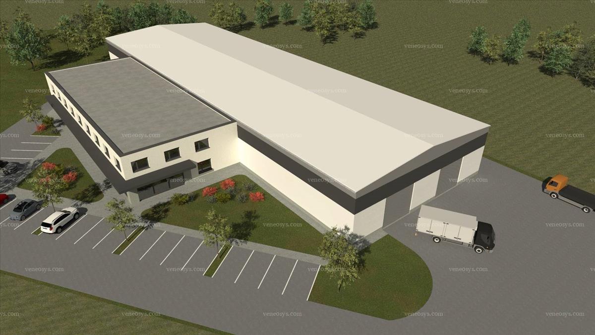 A telek körbekerített, aszfaltos úton közvetlenül megközelíthető, kamionfordulóval ellátott!