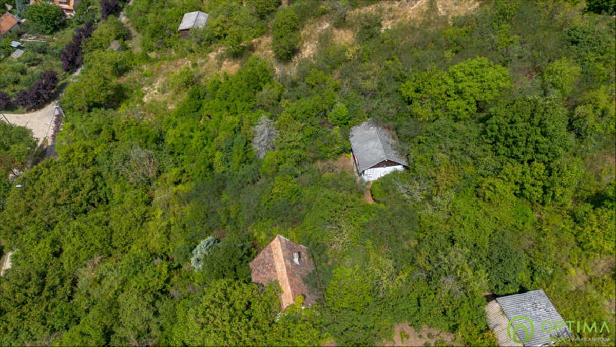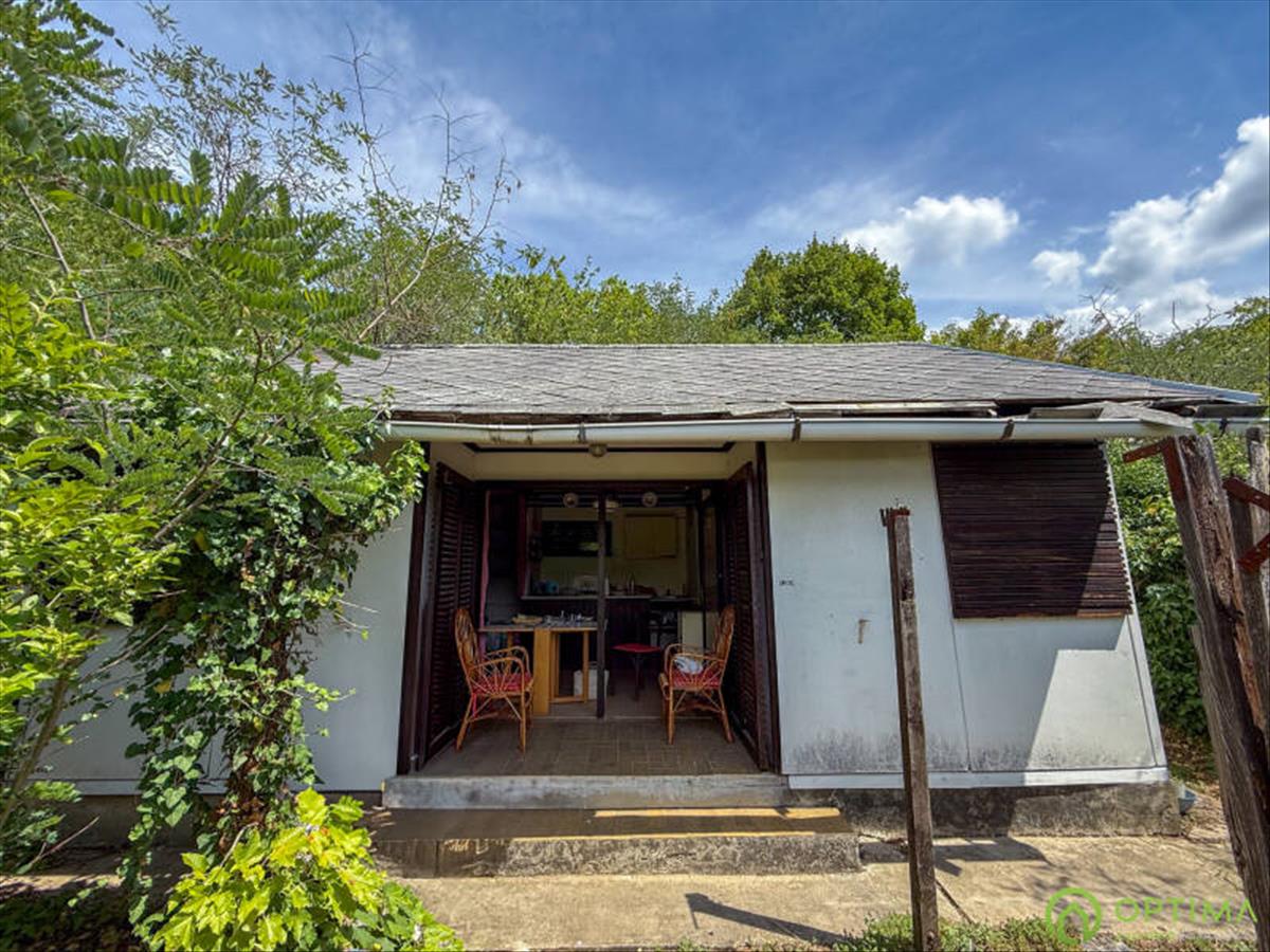 A telek középső részén található egy 28 m²-ES, felújítandó nyaraló, amely jelenlegi állapotában is használható – akár hétvégi kikapcsolódásra, akár tárolásra, amíg a végleges otthon meg nem épül.
