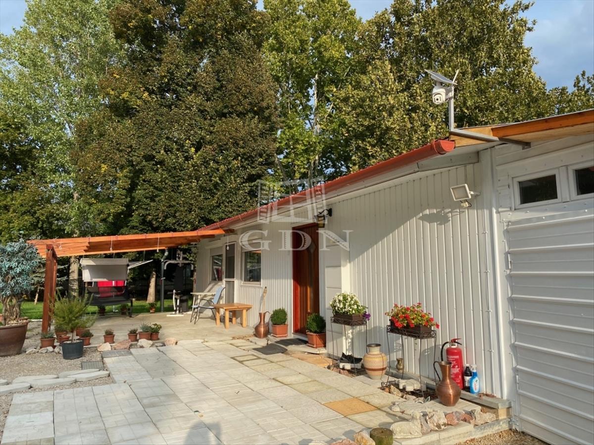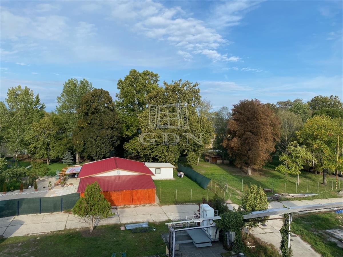 A telken jelenleg egy 210 nm nagyságú acélszerkezetes épület található, melyben 2 lakás és egy garázs kapott helyet.