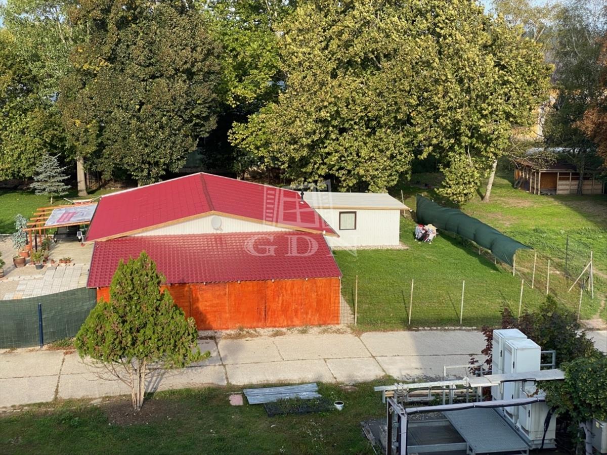 A telken jelenleg egy 210 nm nagyságú acélszerkezetes épület található, melyben 2 lakás és egy garázs kapott helyet.