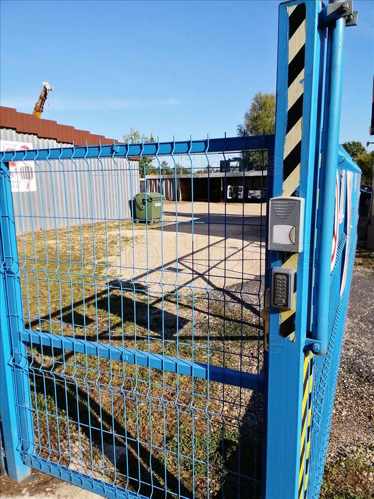 -A telep kamera és riasztó rendszerrel ellátott, a bejárati ipari kapu elektromos vezérlésű.