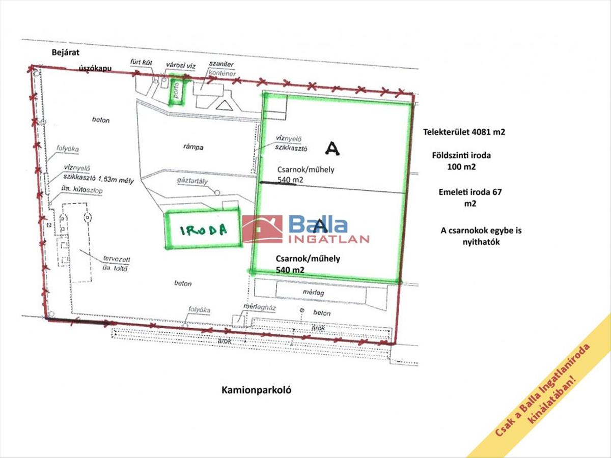 Az ingatlan teljes iparosítással, kiváló külső-belső infrastruktúrával rendelkezik. a terület kamerarendszerrel, riasztórendszerrel, körben kandeláberekkel felszerelt. Összközműves, víz - gáz - villany és csatorna közművel rendelkezik, mindegyikhez mérőórák állnak rendelkezésre. a meglévő vezetékes vízhálózat kiépítve, csatlakoztatva.