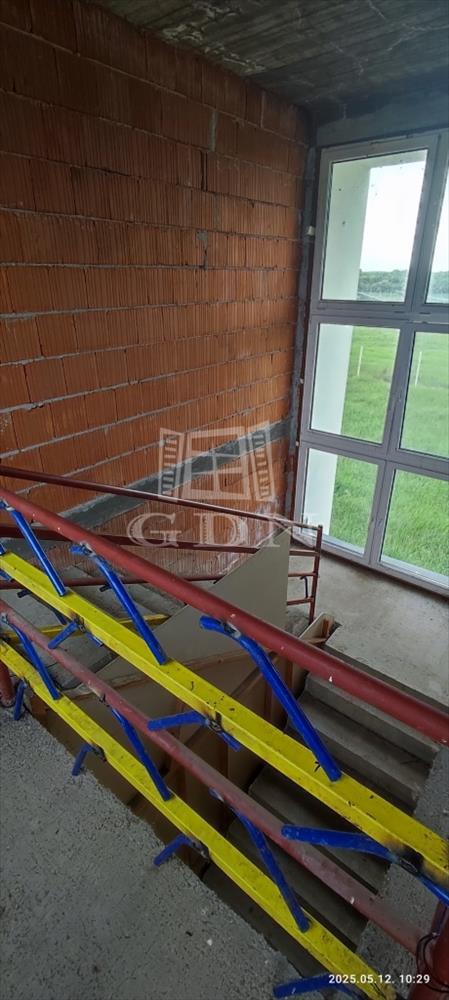 Emelet: szerkezetkész állapotban – terv szerint: 3 iroda, titkárság, irattár, teakonyha és vizesblokk