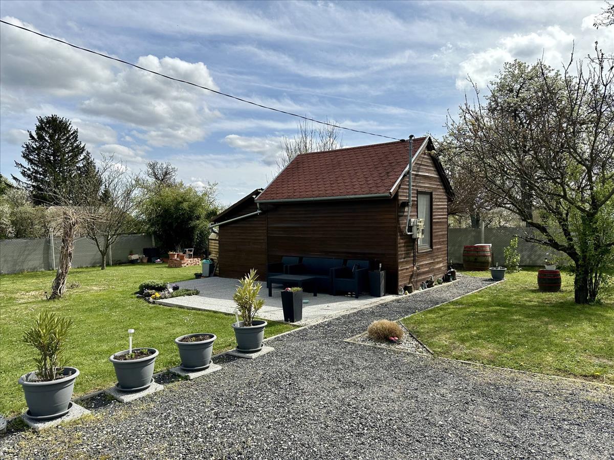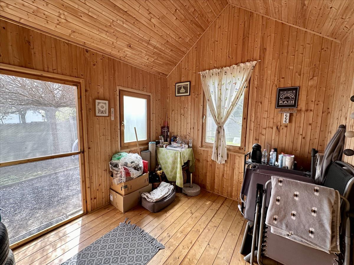The plot measures 2061 m2, half of which is completely fenced. On the fenced part there is a cosy little wooden cottage with only one room and a small storage room! I recommend this pleasant little place for all those who would like to spend a nice sunny afternoon in a quiet place for gardening, barbecues, sunbathing or whatever else they like. If you work in a home office, it is also an excellent choice, so you can spend your working hours in the fresh air in a pleasant green environment. The other part of the plot offers further opportunities for those who might want to farm, plant a crop, keep animals or perhaps start beekeeping. Electricity is connected to the plot. 1X32A. The property is located about 800 m from the main road, with easy access by a gravel road.