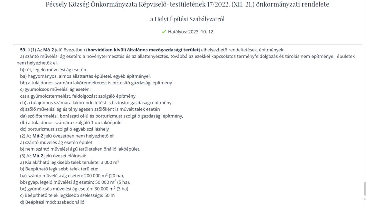A kínált terület Má-2-es besorolású, szántó minősítésű.