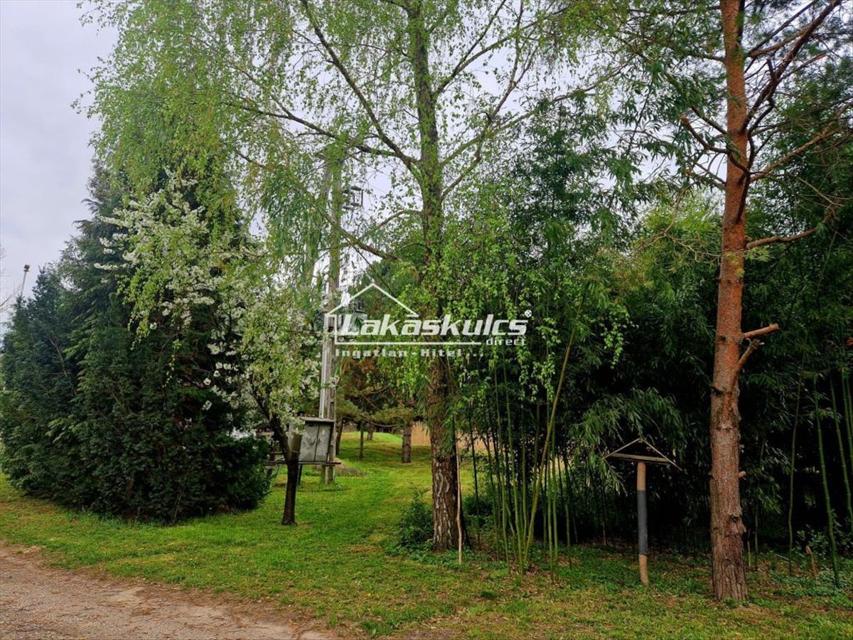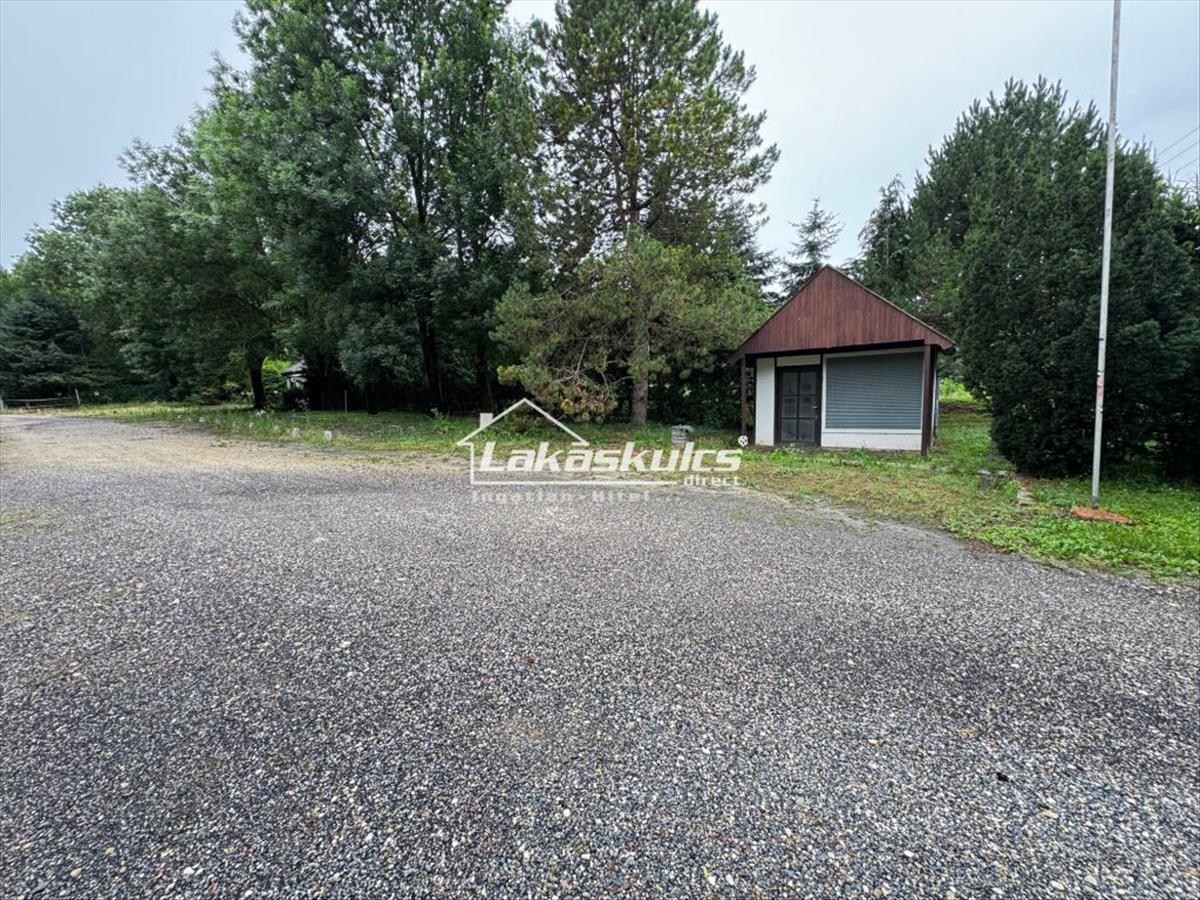 Az első, nagyobb területű (6080 négyzetméter) ingatlanon található építmény 158 négyzetméter nagyságú. Jelenleg több elkülönített mosdóból/zuhanyzóból, egy nagyobb közösségi/kiszolgáló térből, három szobából és három kisebb (előkészítő) helyiségből áll. a házhoz tartozik egy hatalmas, több ezer négyzetméter nagyságú tó, melyet a területen átfolyó patak vize táplál és mely kiválóan alkalmas halgazdálkodásra. Az ingatlanhoz tartozik egy parkoló, amely több lakóautó parkolására is alkalmas lehet. Az m85 autóút, illetve a Balatonra vezető út közvetlen közelsége, illetve a napi több száz, arra közlekedő külföldi lakóautó azt jelenti, hogy az ingatlan kiváló lehetőséget nyújt az átmenő forgalom kiszolgálására, melyhez- kisebb beruházás után- minden adott.