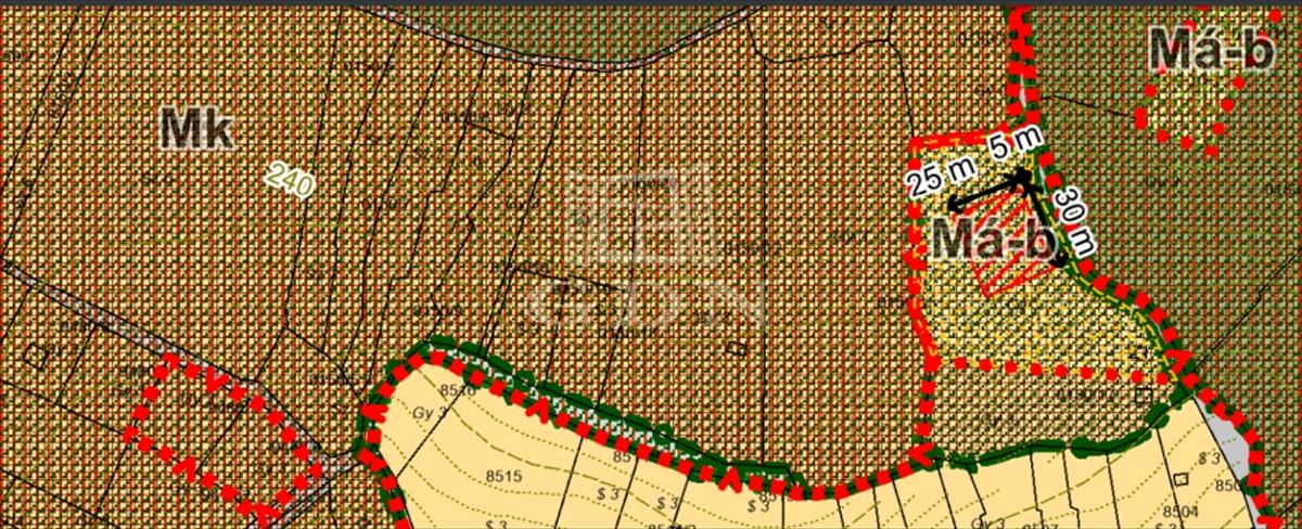 Mk, azaz kertes mezőgazdasági részen található, a helyi építési szabályzat szerint 3%-ban beépíthető.
