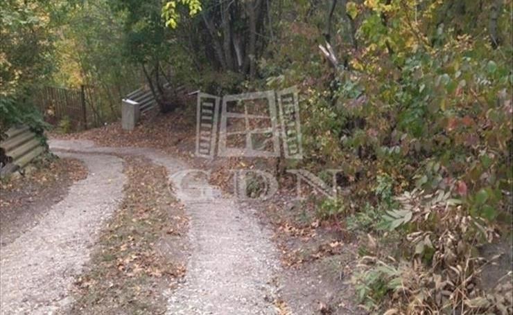 Pomáz Kőhegyen, meredek földút mellett található nyeles telek ...