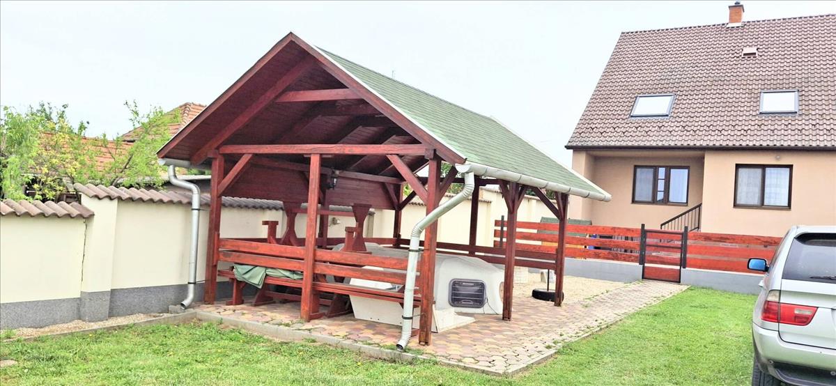 A térkövezett udvaron található egy filagória, szalonnasütő, valamint egy elektromos kapuval ellátott, 2 autó kényelmes parkolására alkalmas duplagarázs is.