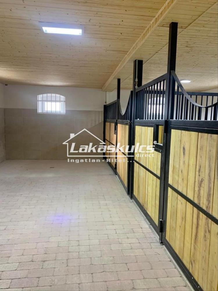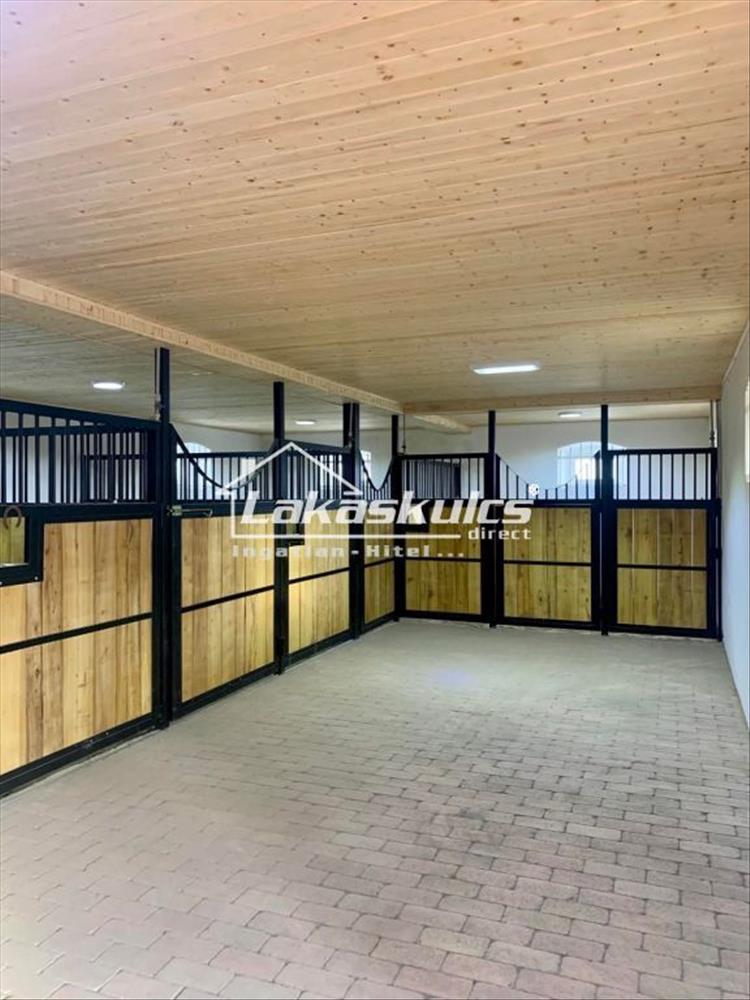 A főépület két részből áll a felső szinten egy 160 nm -es kényelmes lakórészt alakítottak ki, a földszinten pedig az igényesen megépített 7 boxos ló istálló található.