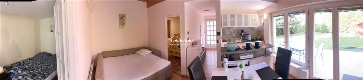 Alsóörsön, a parttól és strandtól pár perc sétára, csendes utcában kínálom eladásra ezt a szépen felújított és berendezett nyaralót. a ház 48 nm, minden helyisége jól megtervezett funkcióval rendelkezik. a konyha a tavalyi évben készült el, teljesen felszerelt, mikrohullámú sütővel, hűtőszekrénnyel, kis főzőlappal ellátott. a nappaliból nyílik két hálószoba, amelyből az egyik tetején galériát alakítottak ki, ahol szintén kényelmesen elfér egy kétszemélyes ágy. A nappali és konyha az étkezővel középen helyezkedik el, közvetlen terasz és kertkapcsolattal.