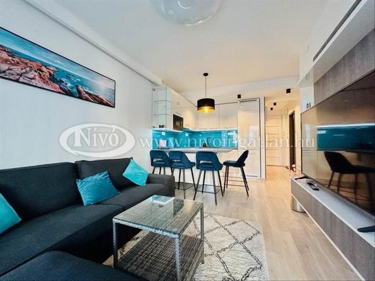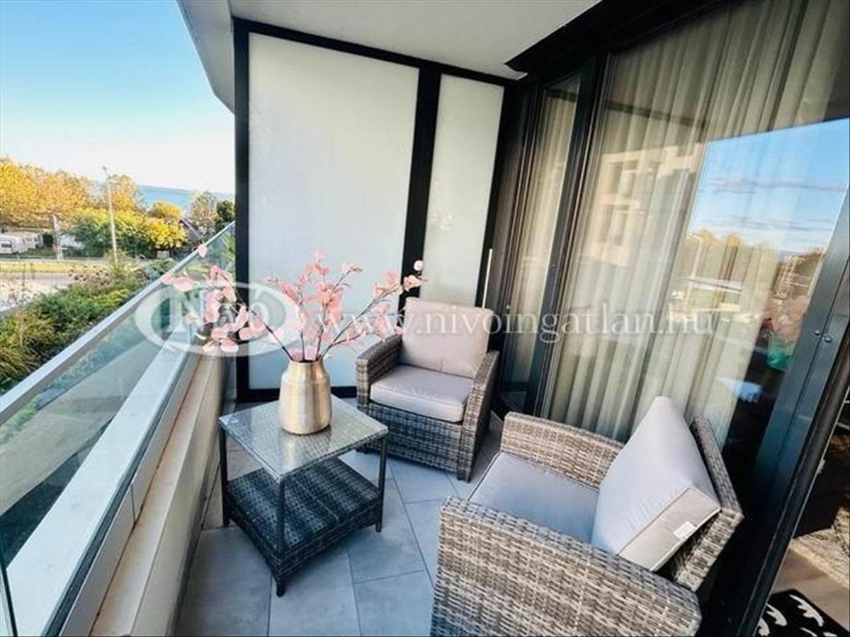 Alsóörsön, partközeli, Balatoni-rálátással, igényes, exkluzív, medencés, 2022-ben épült liftes társasházban, tégla lakás nagy méretű terasszal és teljes, komplett berendezéssel eladó.