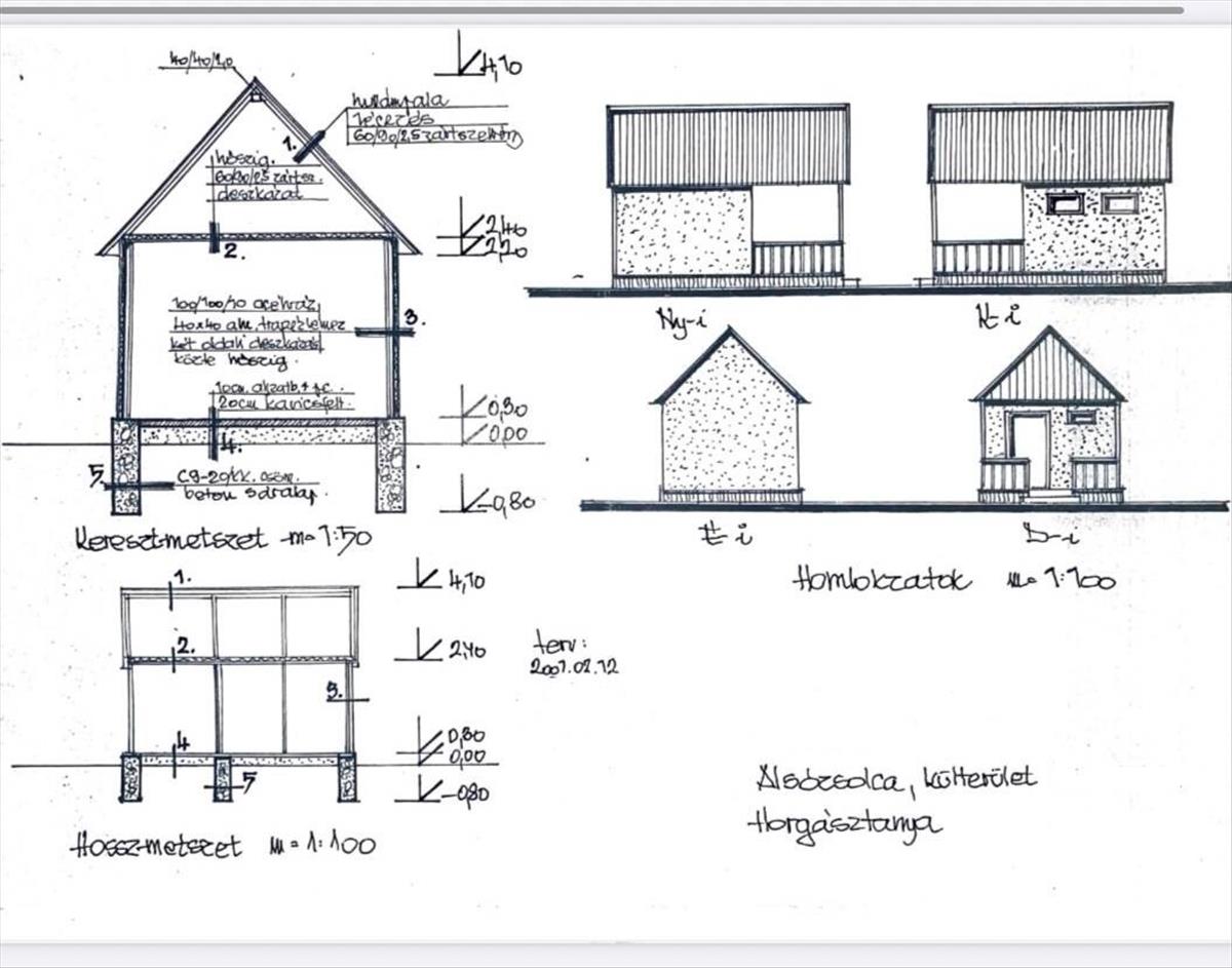 • Szerkezet: Sávalapokon szögacél váz, alumínium trapézlemez borítással, kívül-belül deszkázva, porángyöngyhab