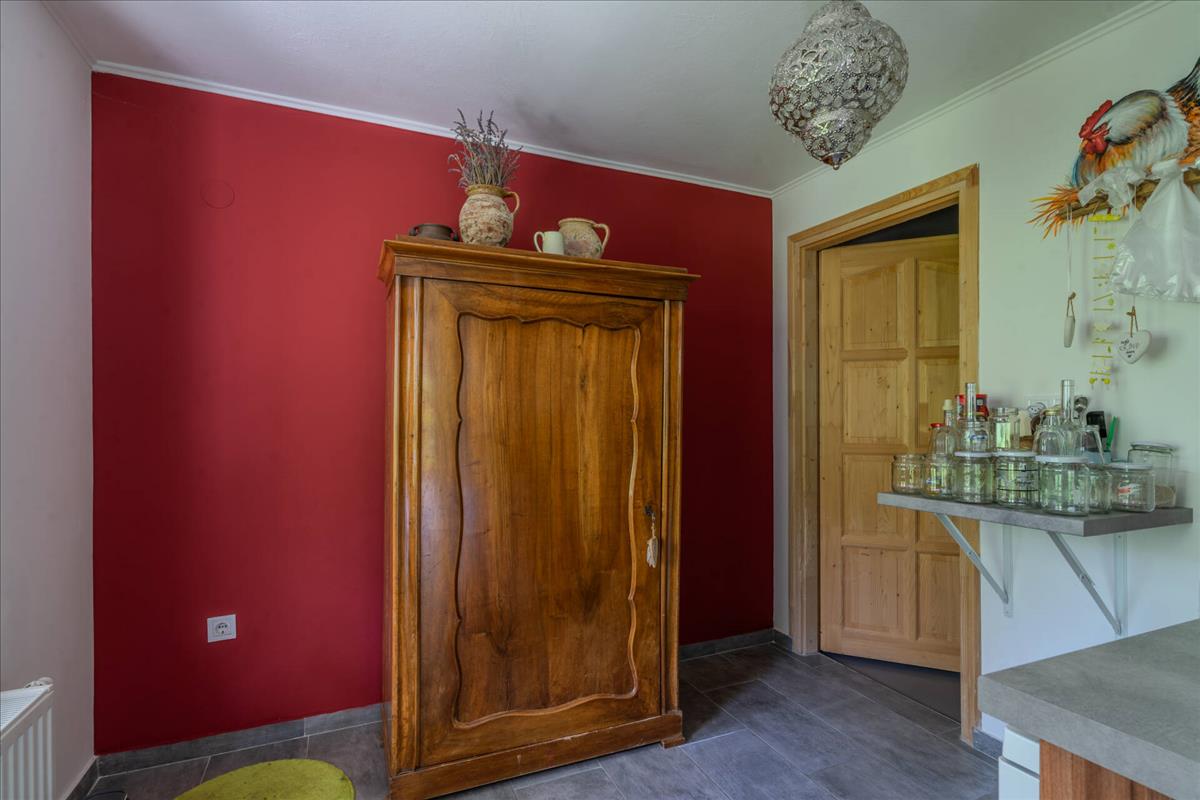 Heating is provided by gas central heating, a cozy cast iron stove, and a tile stove. For added comfort and security, the home is equipped with air conditioning, an alarm, and a camera system. The well-kept garden includes a woodshed, a drilled well, and even a vegetable patch.