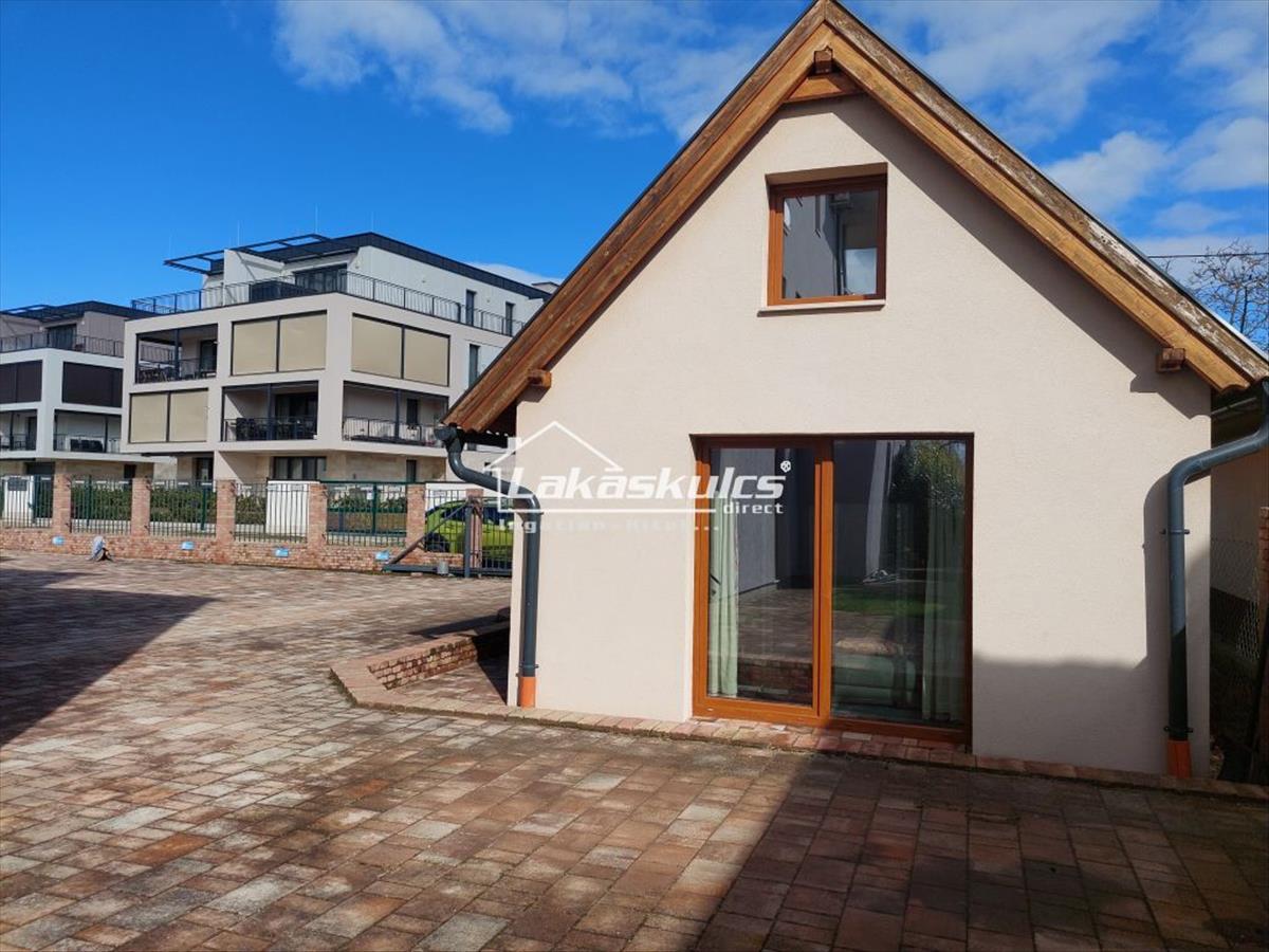 A házhoz tartozik egy 80 nm kertrész parkolóval. a mellette található társasház saját medencéje és kertje is használató a leendő tulajdonos számára.