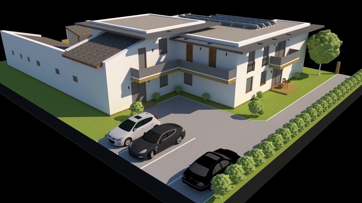 - egy több helyiségből álló vendégtér, szobákkal, vizes helyiségekkel