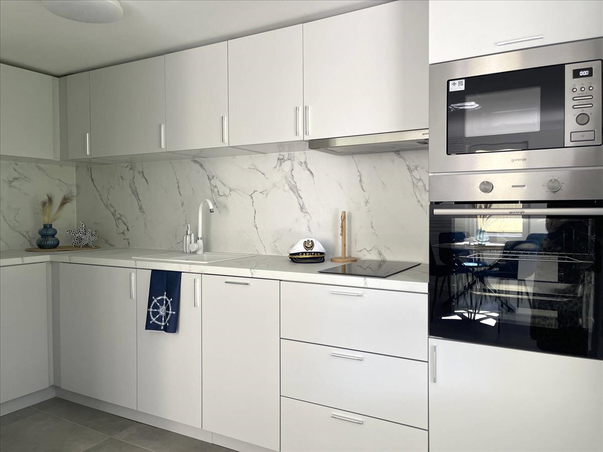 - beépített, gépesített egyedi tervezésű konyhabútor (Gorenje sütő és főzőlap, Gorenje mikró, Gorenje mosogatógép, Gorenje hűtőszekrény és fagyasztó, Gorenje páraelszívó)