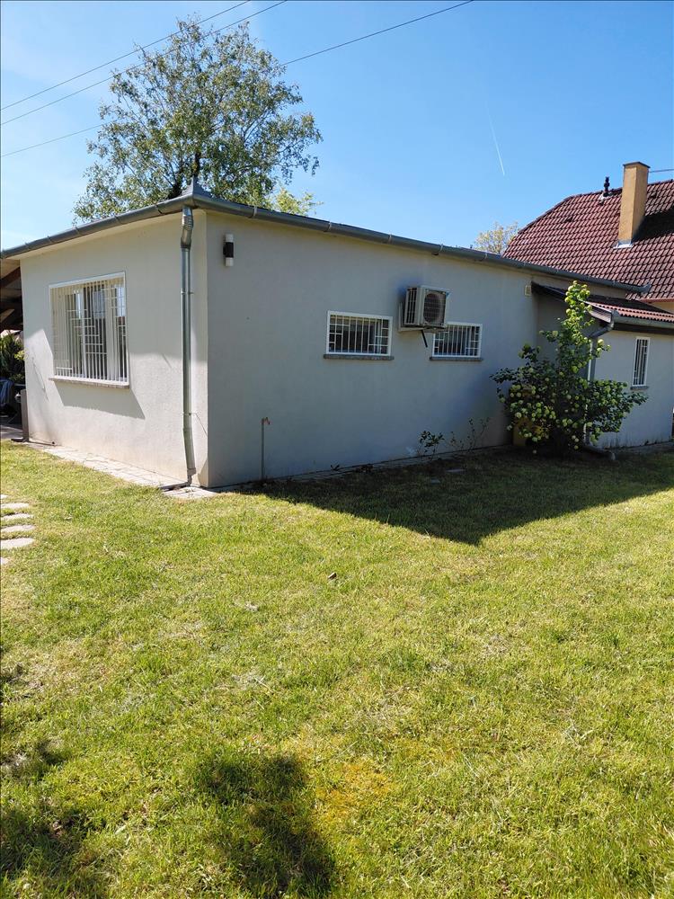 A főépület mellett 2 db 10 m2-es faház is található a telken, az egyik a kerti szerszámok tárolására szolgál, a másik szaunaként működik. a szauna épülete előtti térkövezett részben pihenő rész került kialakításra.