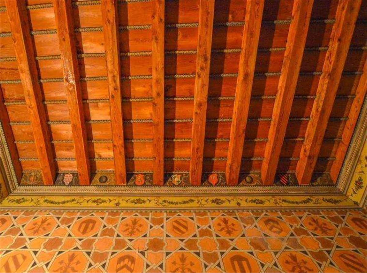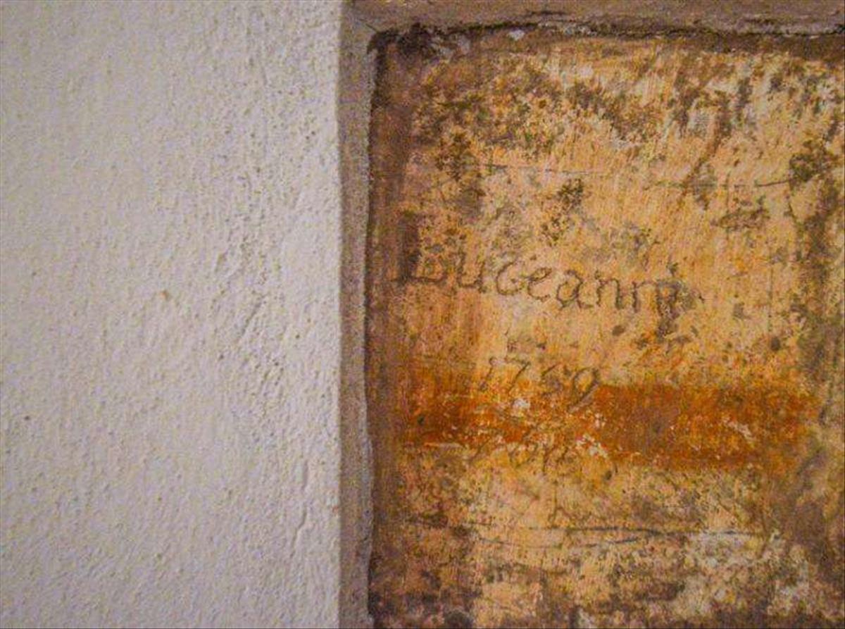 Eredeti faajtón keresztül lépsz be a földszintre, Joan d'Arc freskója mellett.