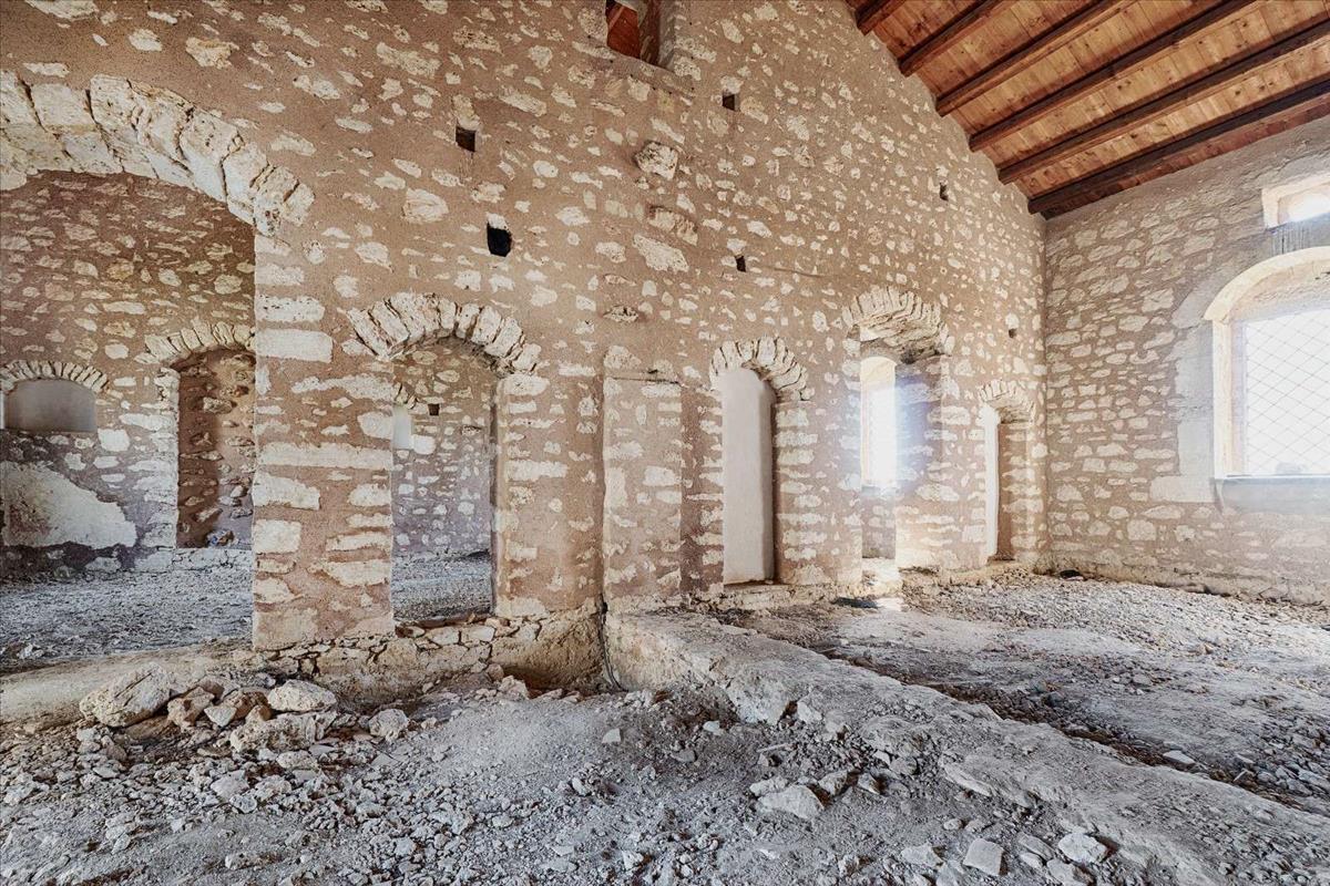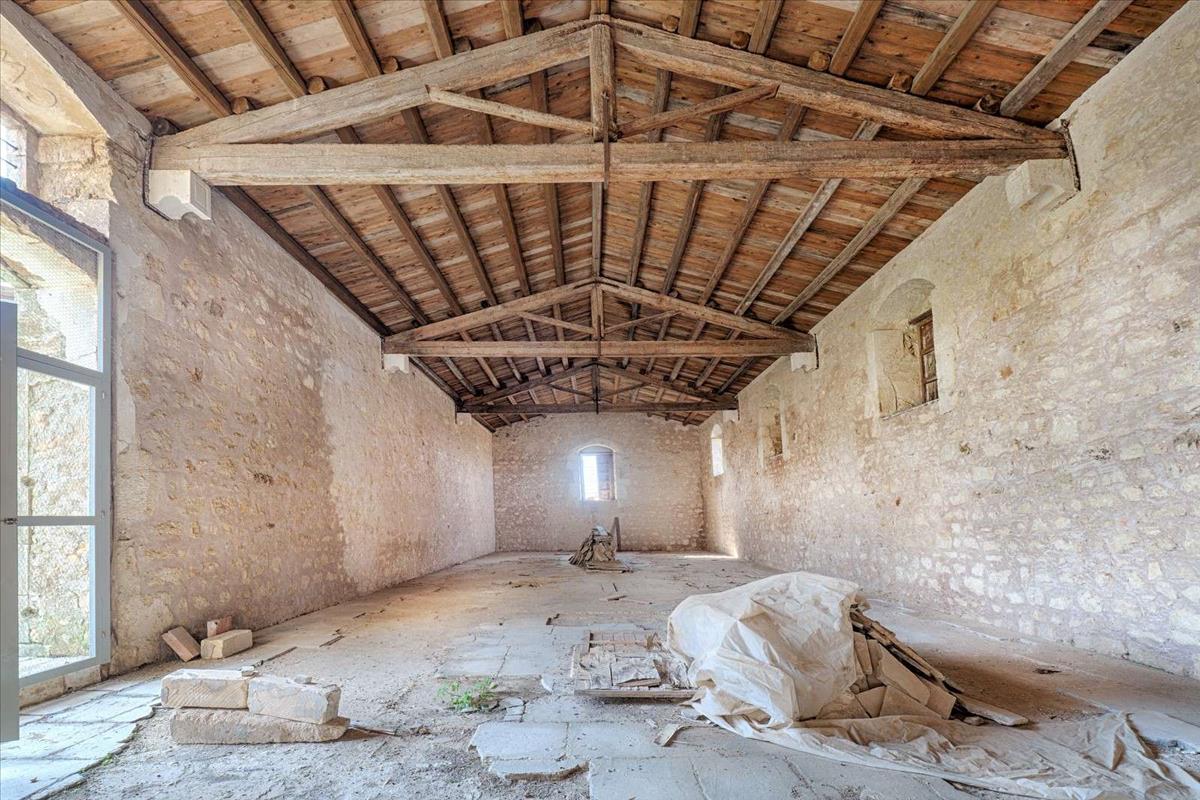 Két panoráma terasz, nagy ciszternák, belső kertek, kőívek és boltíves mennyezet jellemzik a területet. Eredeti bazolé padló, magas mennyezet és a mezzanine padló kiépítésének lehetősége, továbbá mozaik kövezés, a tipikus konyha hagyományos fasütővel és számos eredeti funkció található itt.