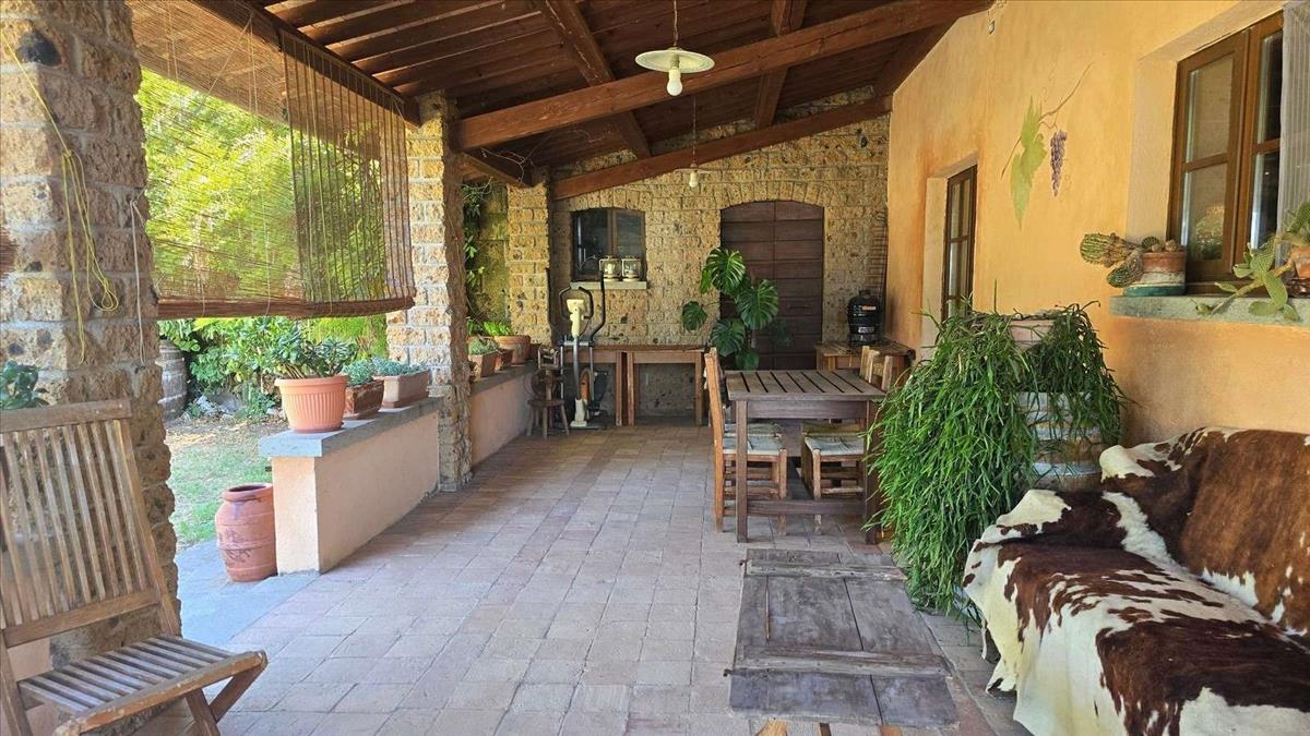 155 m2-es tornác három oldalról nyílik a parasztházból az étkező felől.