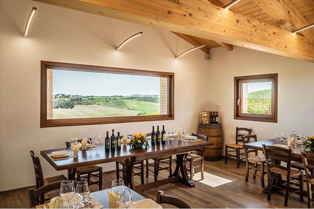 104 hektár / 256 hektáros borbirtok Brunello di Montalcino DOCG szőlőültetvényekkel, pincével, tanyával, mellékletekkel és gabonával beültetett földdel eladó Montalcinoban, Siena.