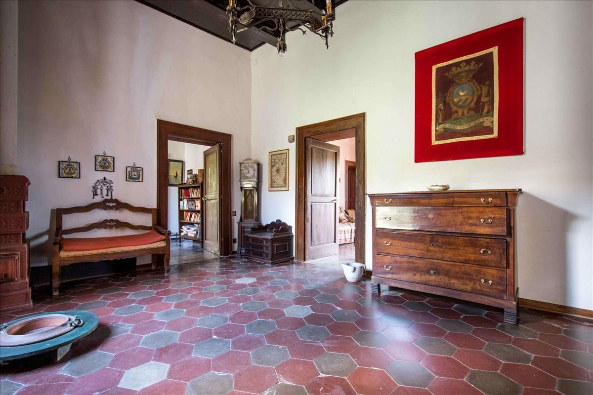 A Soluzione Casa ingatlanügynökség a palazzo egy részét kínálja eladásra, a fő és legkiterjedtebb részét, az U-alakú részt.