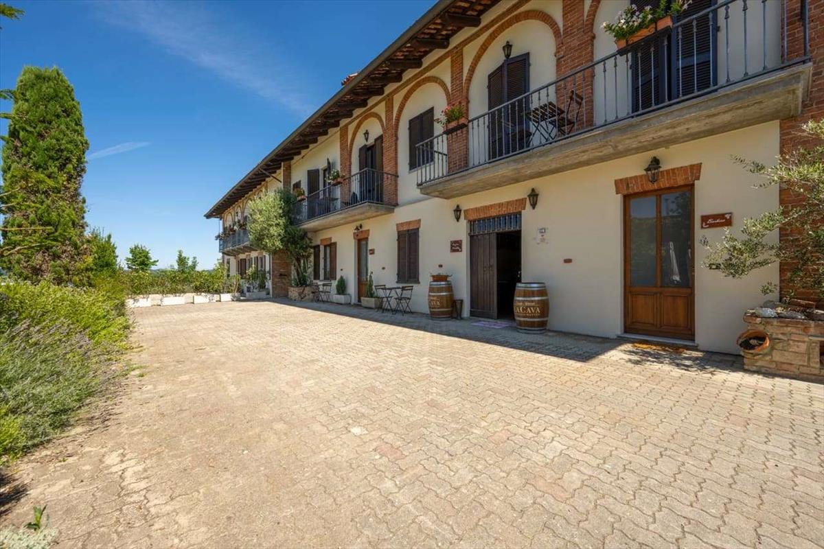 Egy domb puha címerén, melyet szőlőültetvények ölelnek és a hóporos Alpok felé néznek, San Damiano d'Asti közelében található ez a figyelemre méltó ingatlan, ahol a vendéglátás és a hagyomány összeáll.
