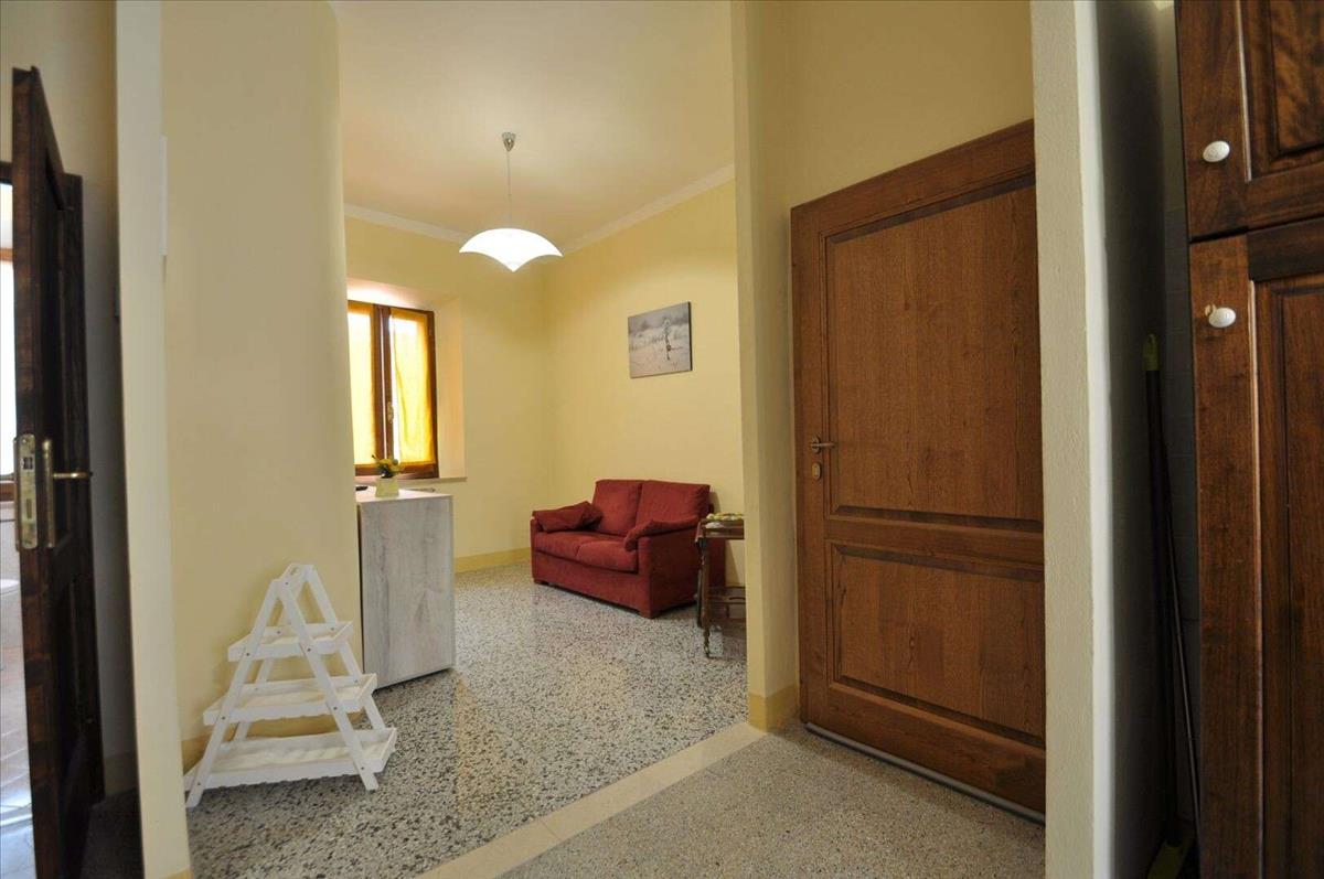 A bájos Pienza városfalain belül van egy nemrég felújított ingatlan, mintegy 31 m2-es fürdőszobával. A környéken kényelmesek a szolgáltatások és a parkolási lehetőségek, mindez egy élénk gyalogos utcában, ahol más jól működő vállalkozások is megtalálhatók.Az ingatlant külső nyíló faajtó és kovácsoltvas keretű dupla üvegajtó biztosítja. Az ablakoknál gyönyörű padló és elegáns csempe található, amelyek kényelmes szolgáltató fürdőszobát adnak.