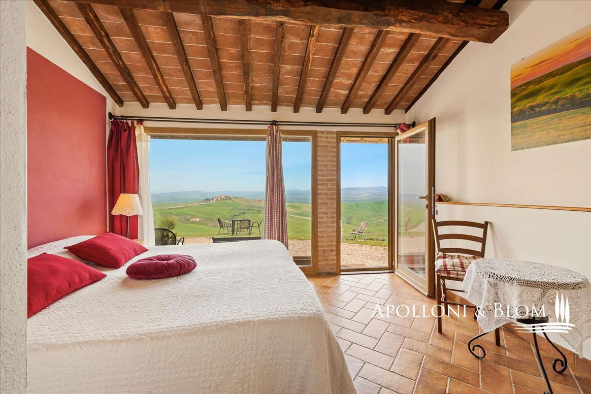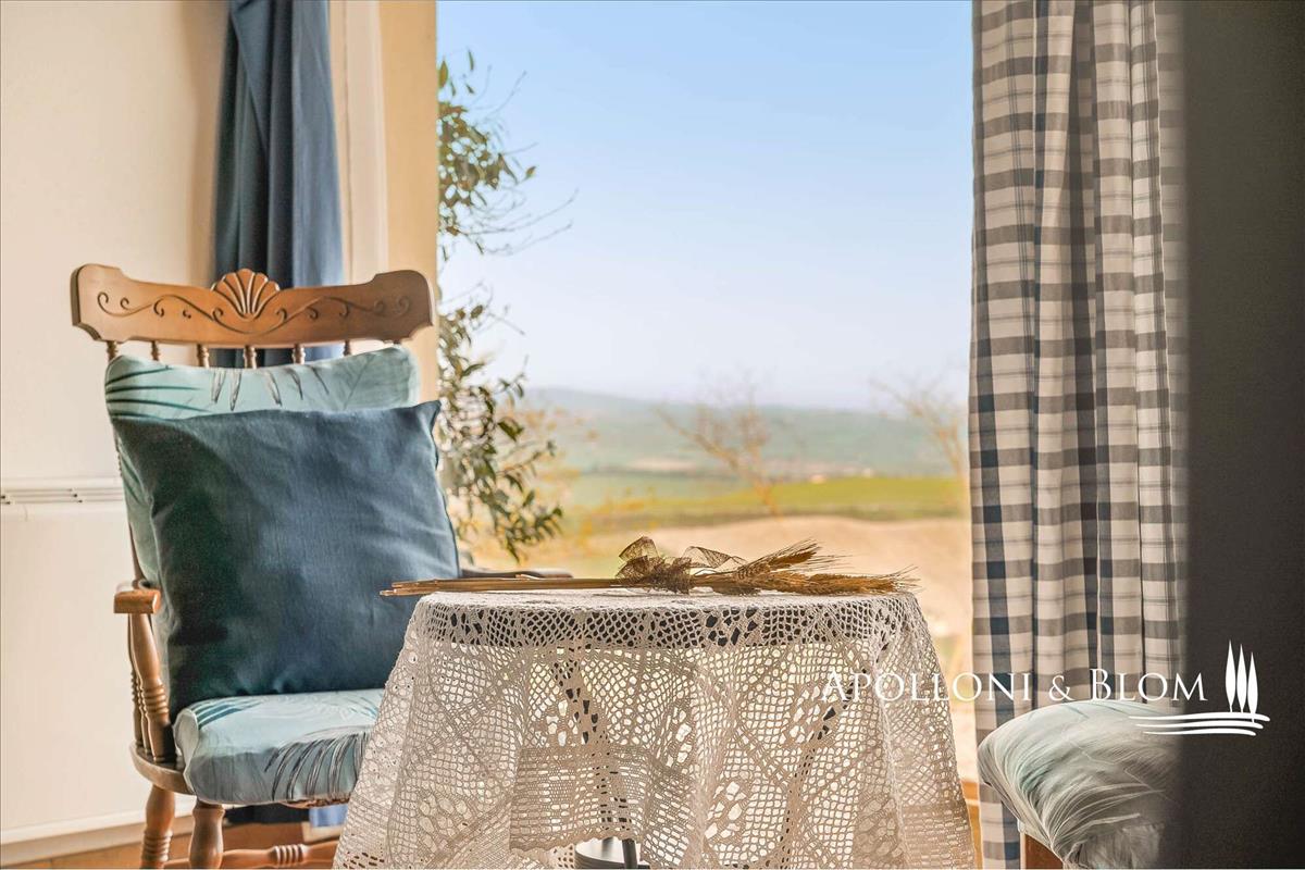 65 hektáros bájos vidéki ingatlan eladó: felújított agriturismo, napenergia, lenyűgöző kilátás Créte Senesi és Siena égboltjára.