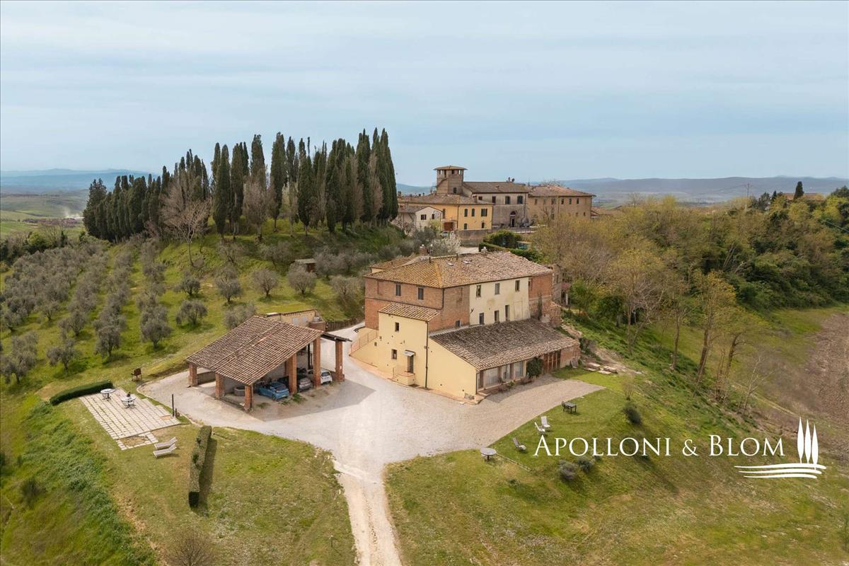 Sienától délre, az agyagdombok lágy hullámait követve a horizontra nyúlik, ez a jellegzetes birtok a festői szépség, a történelmi vonzerő és a fenntarthatóság ritka kombinációját kínálja.