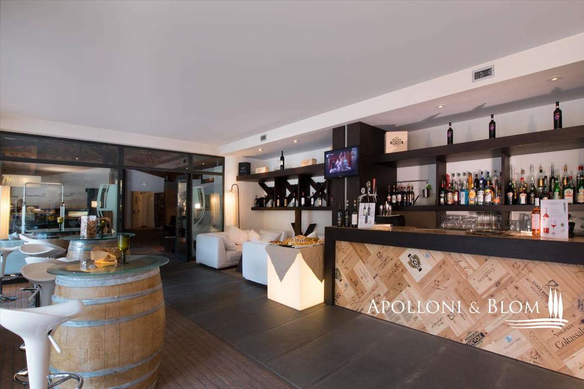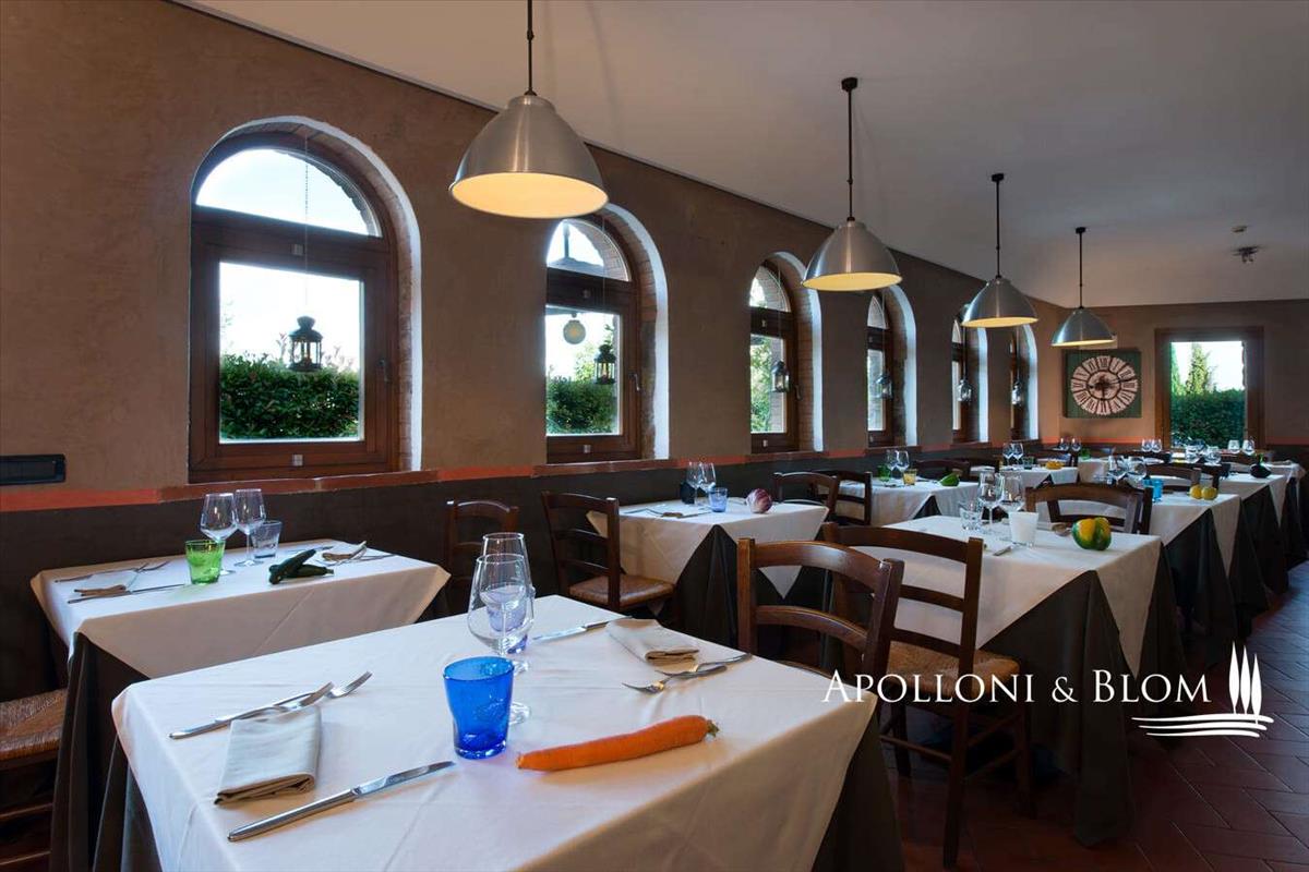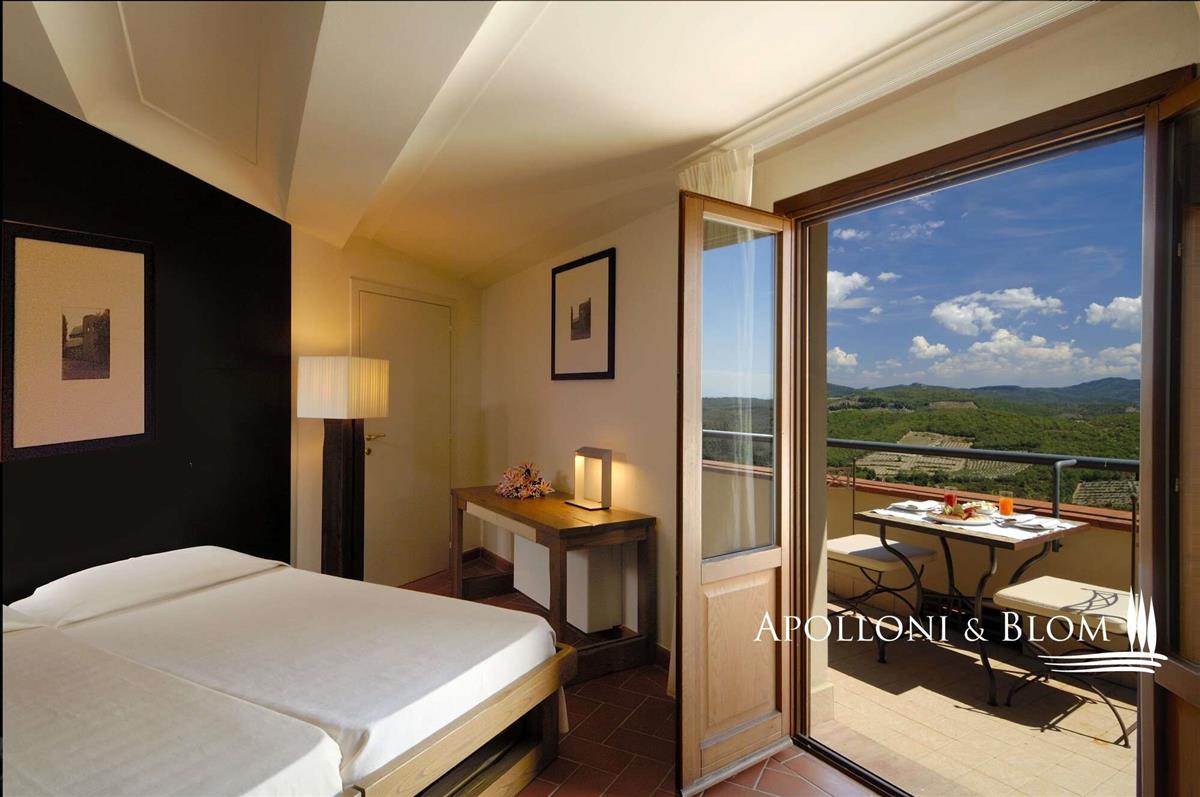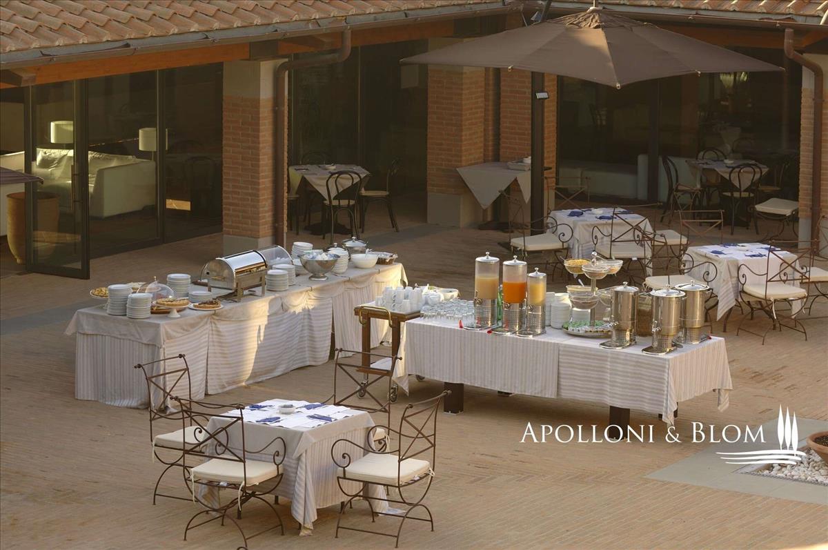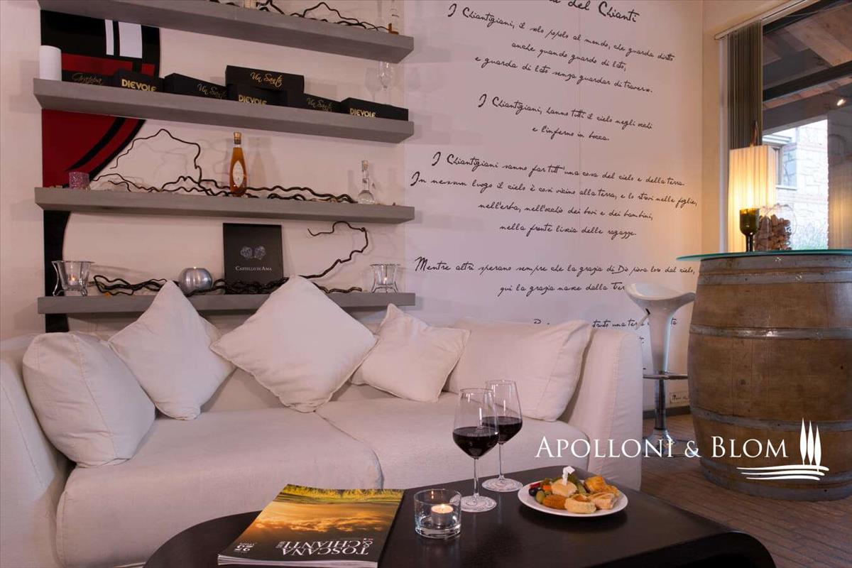 A bejárati csarnok meghívó és fényes tér, üvegfalakkal és magas mennyezettel. A bárnál varázslatos szabadtéri kilátás nyílik a parkra, az úszómedencére és a Chianti Classico szőlőültetvényeire. Földszinten egy tág étterem- és étkezőterület található, továbbá a wellness központ, amit a nagy ablakok nyitnak a parkra és a Chianti-dombokra. Itt a regenerálódás a cél.