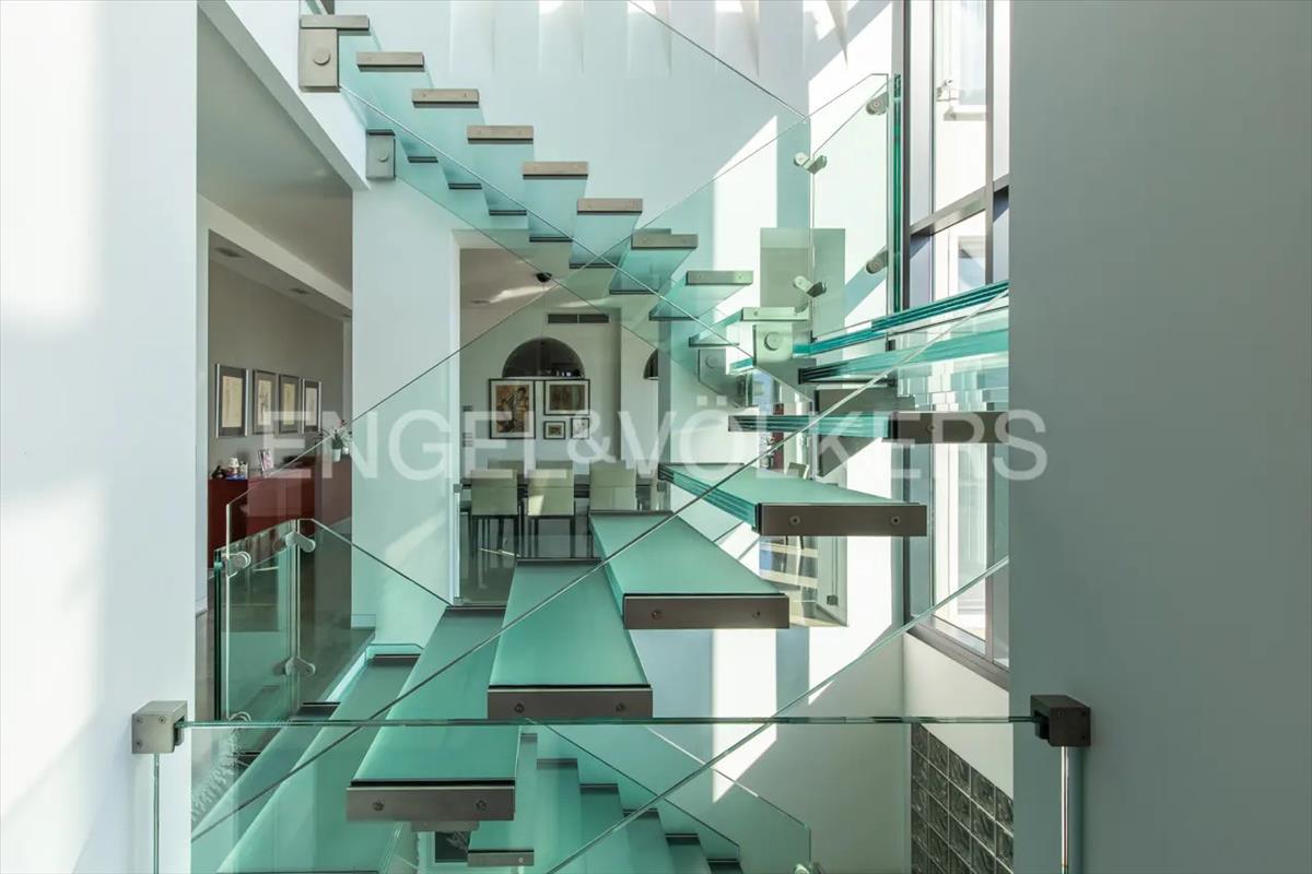 A ház három életszinten oszlik, külsőleg és belsőleg is egy festői üveg lépcsőházon vagy liften keresztül.