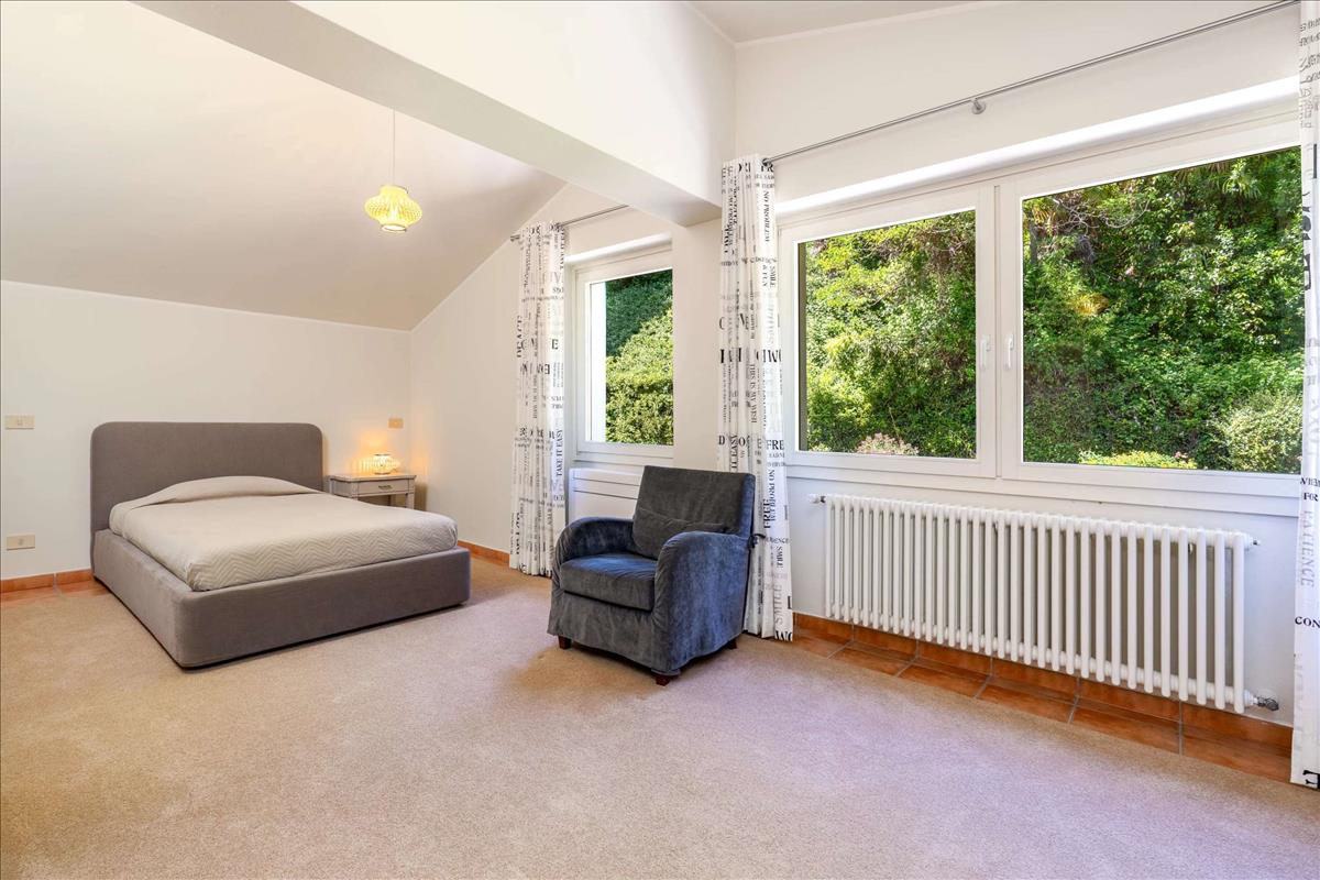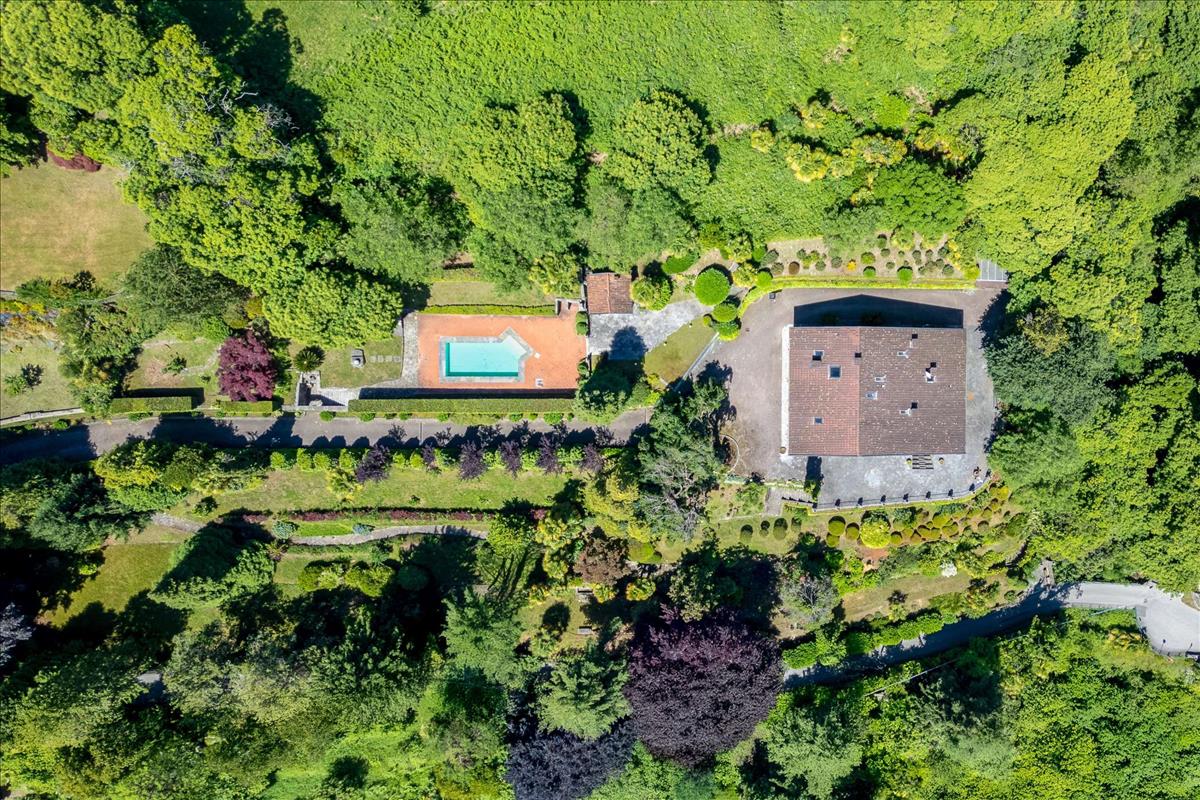 Elegáns villa eladó, park és medence az első dombon Oggebbio, néhány lépésre a tótól.