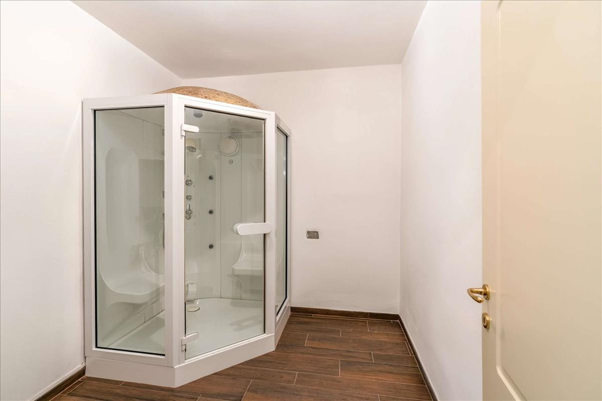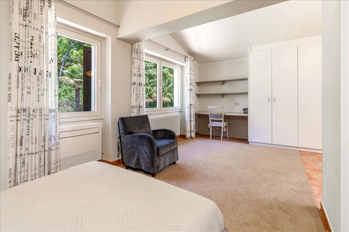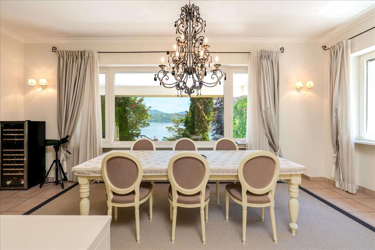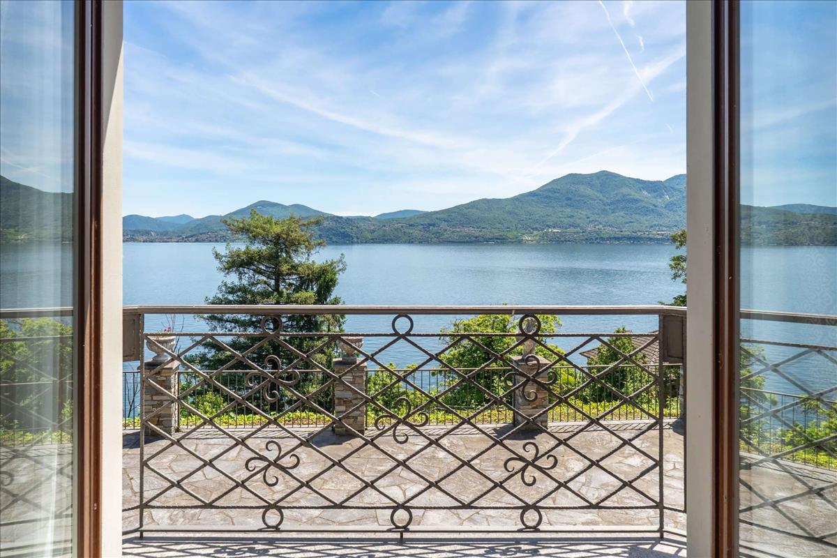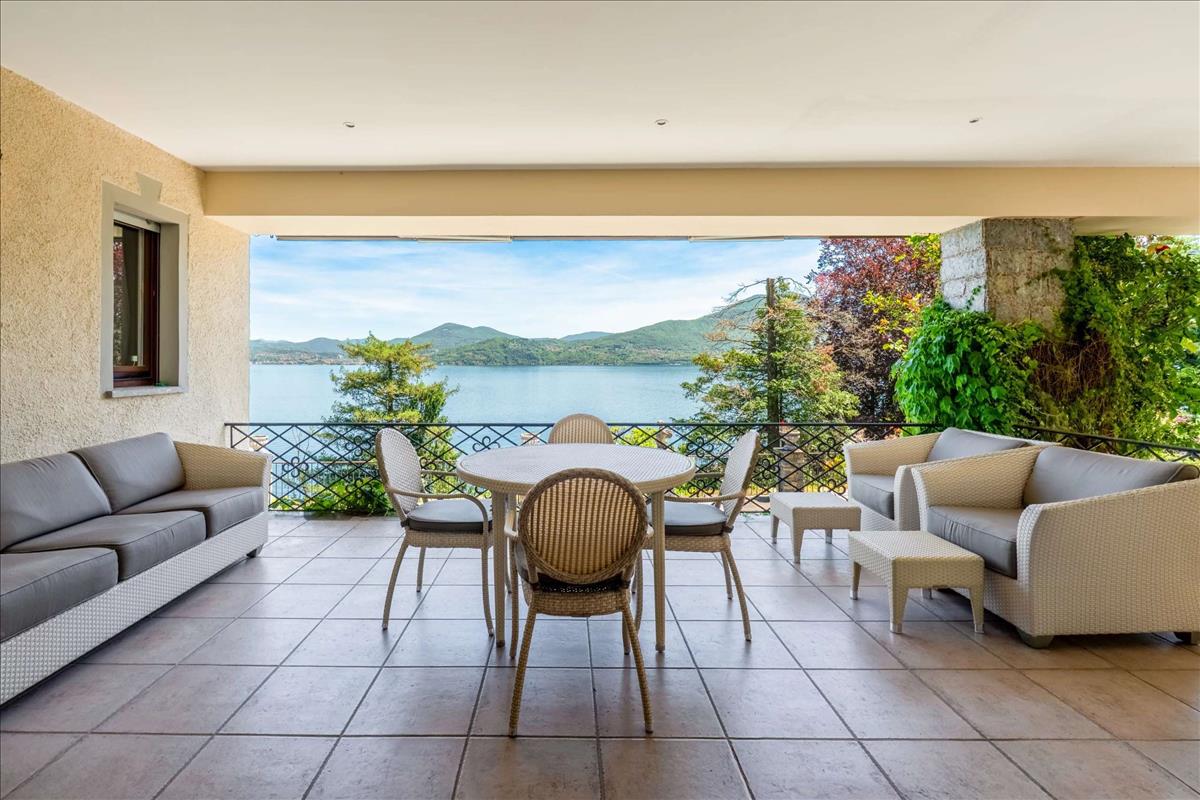 A villa bejáratánál egy nagy tornác található, amely árnyékos területen ideális a Maggiore-tó kilátására.