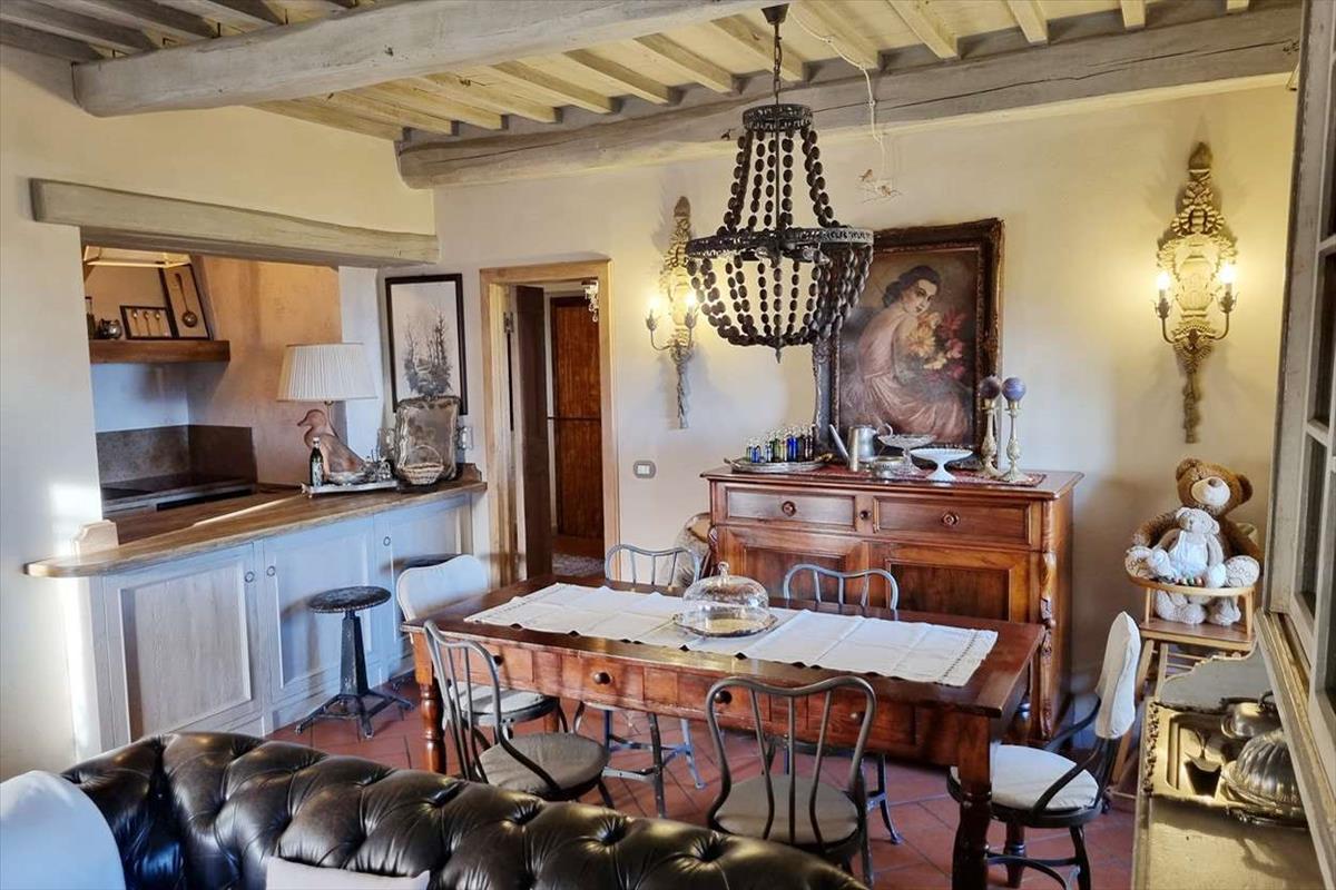 A főbejárat a gyönyörűen kialakított nappaliba és ebédlőbe nyílik, gesztenye-gerendás mennyezettel, és két ablak a Valdinievole panorámájára néz.