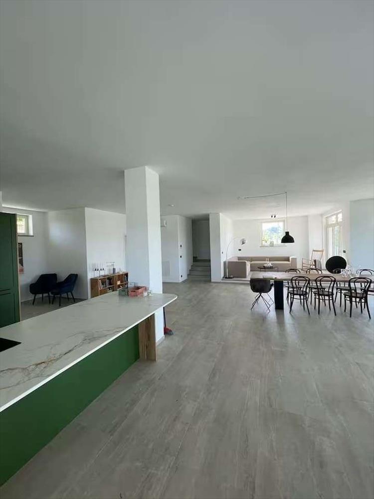 Az ingatlan minimalista kialakítása, tiszta vonalai, expanzív ablakai és bőséges természetes fénye szemlélteti ennek az építészeti stílusnak a lényegét. A tágas, nyitott padlózat és a beltéri és kültéri terek közötti zökkenőmentes átmenet ideális a hosszabb olasz nyári évszakokra. Ezek a letisztult vonalak a gördölő dombokkal és a kiterjedt zöld szőlőültetvényekkel olyan összhangot teremtenek, amit a jelenlegi tulajdonosok szerint nagyon sikeres formulának tartanak.