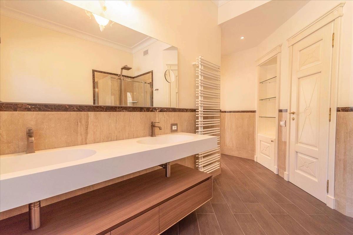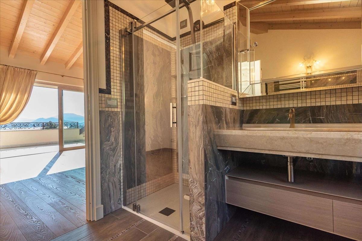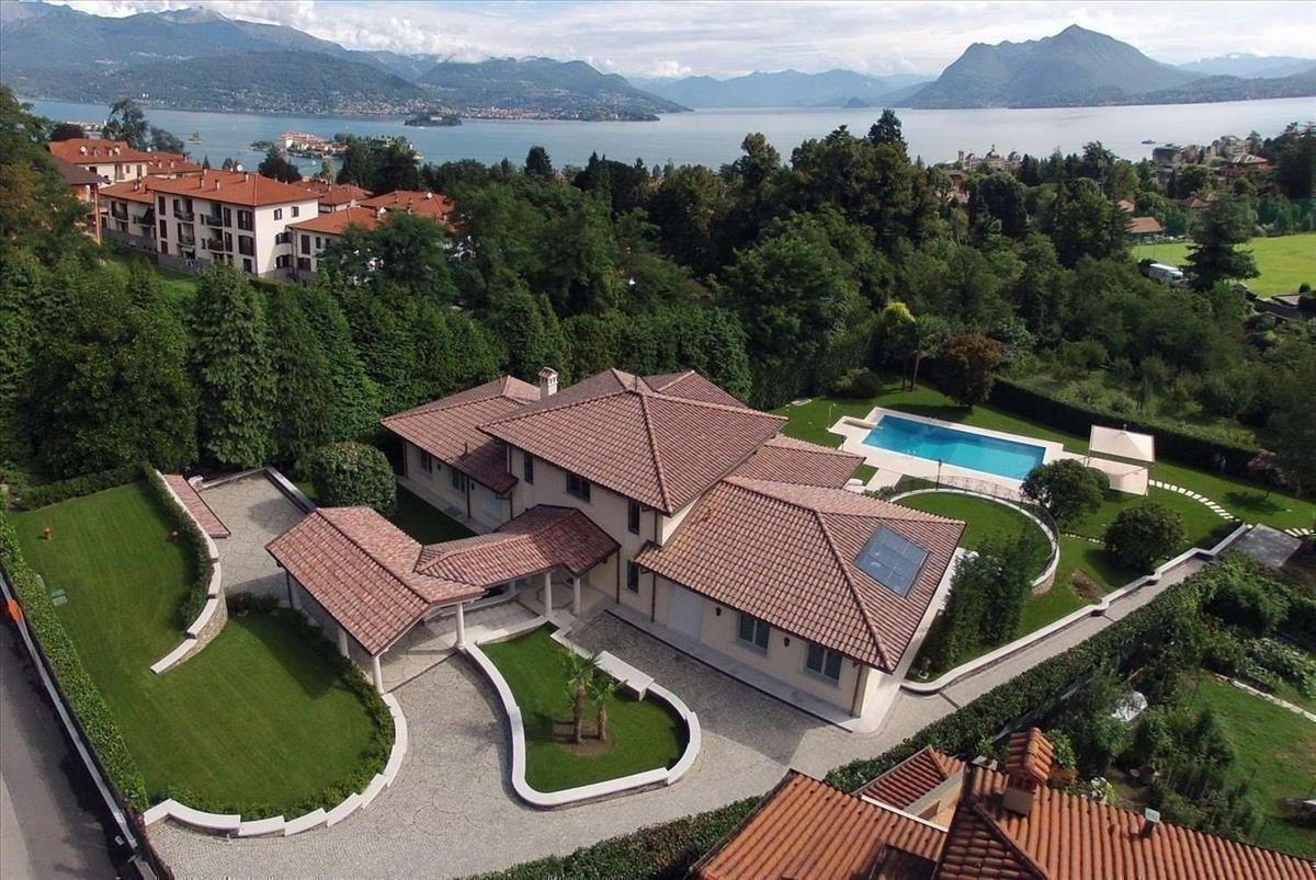 Domináns és privát pozícióban áll ez az exkluzív luxus tókilátásos villa, mindössze percek alatt elérhető a központ Stresa felől, körülvéve zöldövezettel és a Maggiore-tóra nyíló kilátással. Ez az ingatlan egyedi, ideális azoknak, akik Piemonte-ben egy elegáns és modern lakóhelyet keresnek, tökéletesen integrálva a tájba. A 3 460 m²-es telken álló kizárólagos ingatlan a tervezés egy vezető olasz mérnök és egy nagy helyi cég munkájának eredménye. Az eredmény egy gyönyörűen megtervezett villa, amely ötvözi a klasszikus építészetet a legkorszerűbb technológiákkal a maximális kényelem érdekében. A villa három szinten terül el, mintegy 500 m²-es teljes alapterülettel, világos szobákkal és luxus részletekkel: parkettás padló, márvány csempe, nagy panorámás ablakok, amelyek a Maggiore-tóra és Stresa városára nyújtanak lélegzetelállító kilátást. Földszinten egy impozáns bejárat, két masszív oszlop vezeti a nappalit, amelyről kilátás nyílik a fedett teraszra, ideális tóra néző reggelire vagy naplementés vacsorára. A konyha modern és funkcionális, különálló, és a nappalira kapcsolódik. A földszinten két kétszobás hálószoba található walk-in gardróbokkal és saját fürdőszobákkal, a területen fitnesszterem teraszos rész is rendelkezésre áll. A felső emeleten van a főlakosztály: egy exkluzív hálószoba saját terasszal, nagy walk-in gardrób, dizájn fürdőszoba és egy privát tanulmány, ideális otthoni munka és luxus, illetve abszolút magánélet. Az alagsorban pedig egy független apartman a személyzet számára. Ez magában foglalja a nappalit konyhával és étkezővel, egy hálószobát saját fürdőszobával és külön terasszal. Továbbá borospince és technikai helyiség kazánnal is része az ingatlannak. A jól karbantartott kert az ingatlan része. Hitel.hu - Hasonlítsa össze a bankok lakáshitel ajánlatait