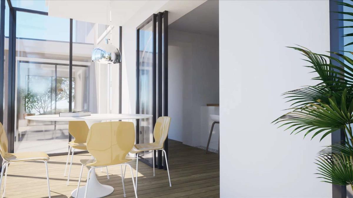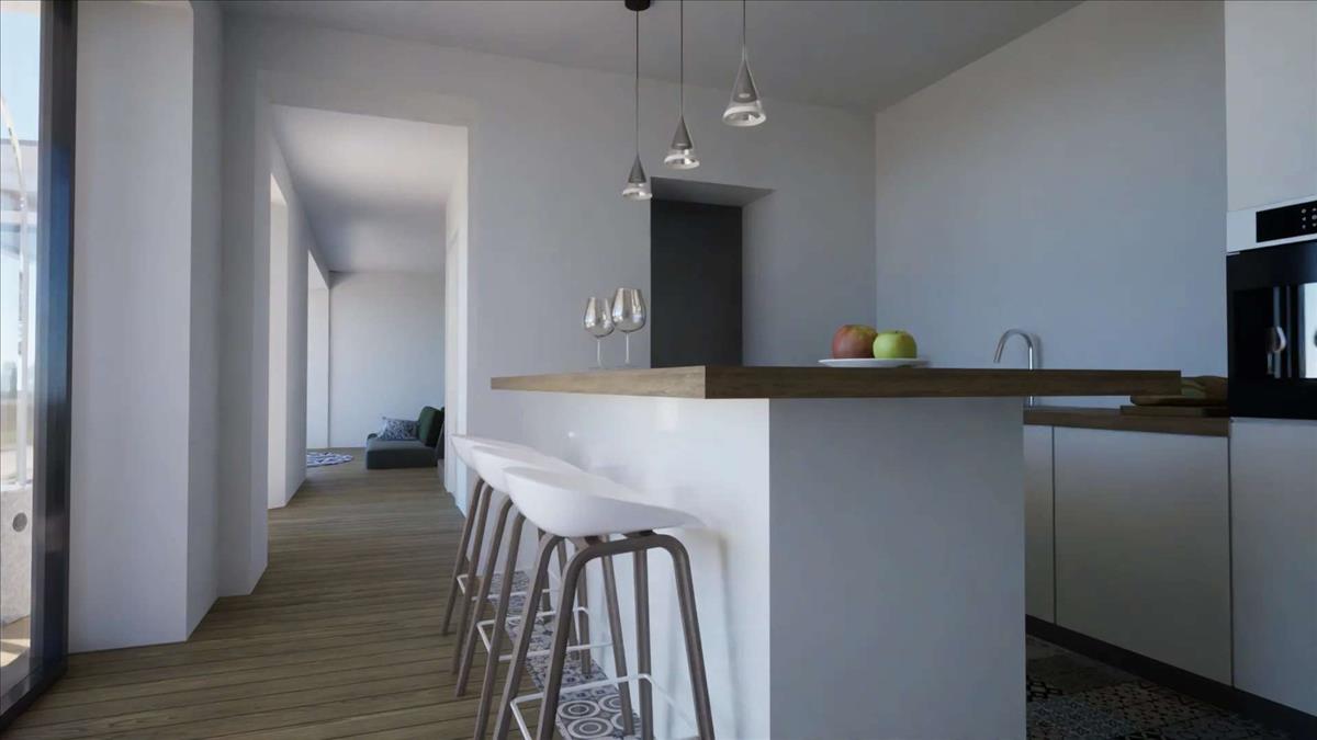 A nappaliban található egy modern, nyílt terű konyha, amit a modern design és a kényelem szerelmeseinek terveztek.