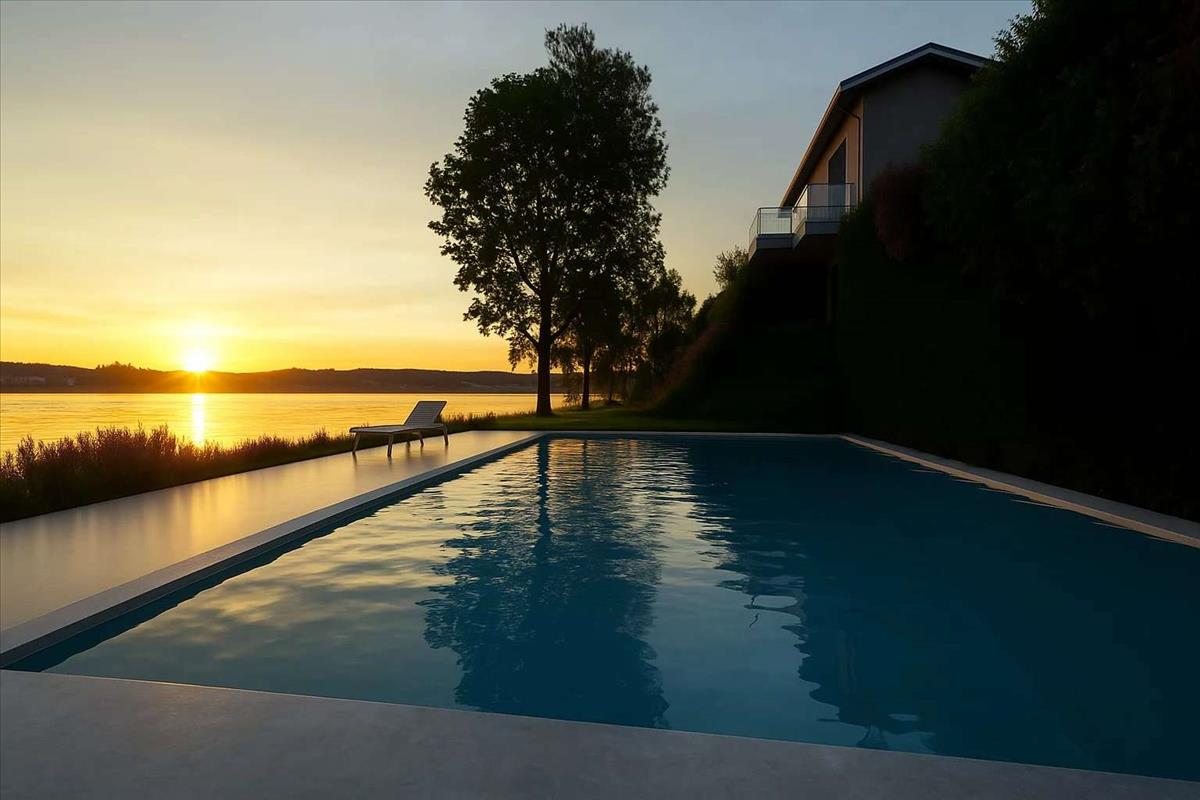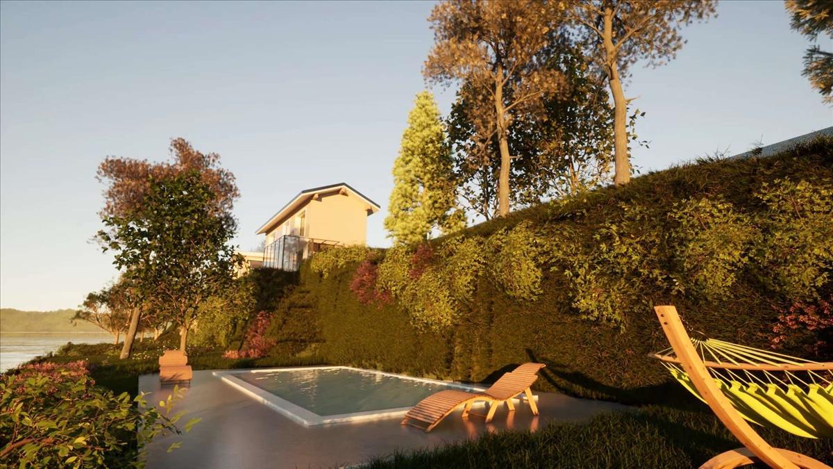 A hálószobának nagy saját terasza van, ahonnan páratlan kilátás nyílik a tóra, így nyugalom és kikapcsolódás oázisát teremti.