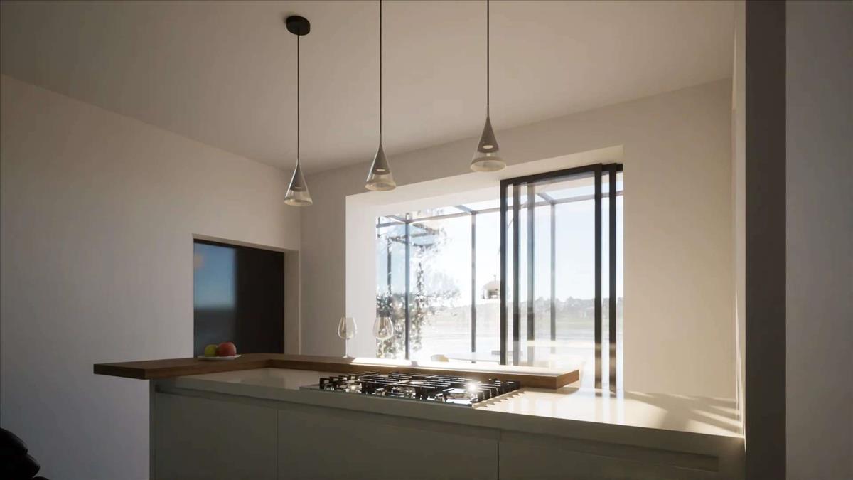 A konyha nyílik egy kellemes verandára, egy tökéletes hely kültéri étkezésre, miközben élvezed a kilátást a kertre és a tóra.