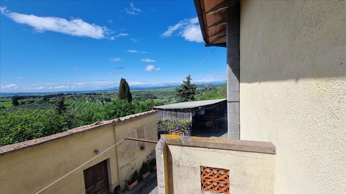 Volterra vidékén, mindössze 5 km-re Volterra központjától és szolgáltatásaitól, a főúton található, három apartmanra osztott parasztház része eladó.
