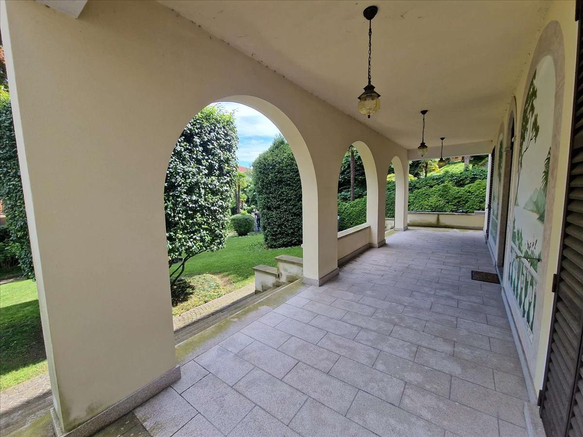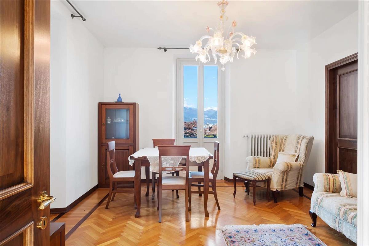 Ez a luxus történelmi ház eladó, a Maggiore-tó három emeletén. A földszint egy bejárati csarnokból áll, amely egy fedett tornácon át vezet a főcsarnokba. Az étkező, amely a konyhában található, a ház szíve, tökéletes a kellemes pillanatokhoz. A padlón is két kétágyas hálószoba és két fürdőszoba található.
