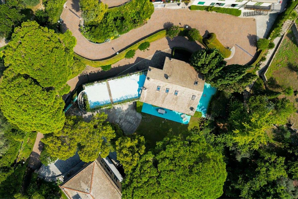 A villa kiemelkedik építészeti eleganciájával és páratlan panorámahelyzetével; lélegzetelállító kilátás nyílik a tengerre és a Portofino promontorára.