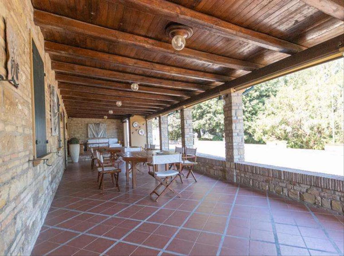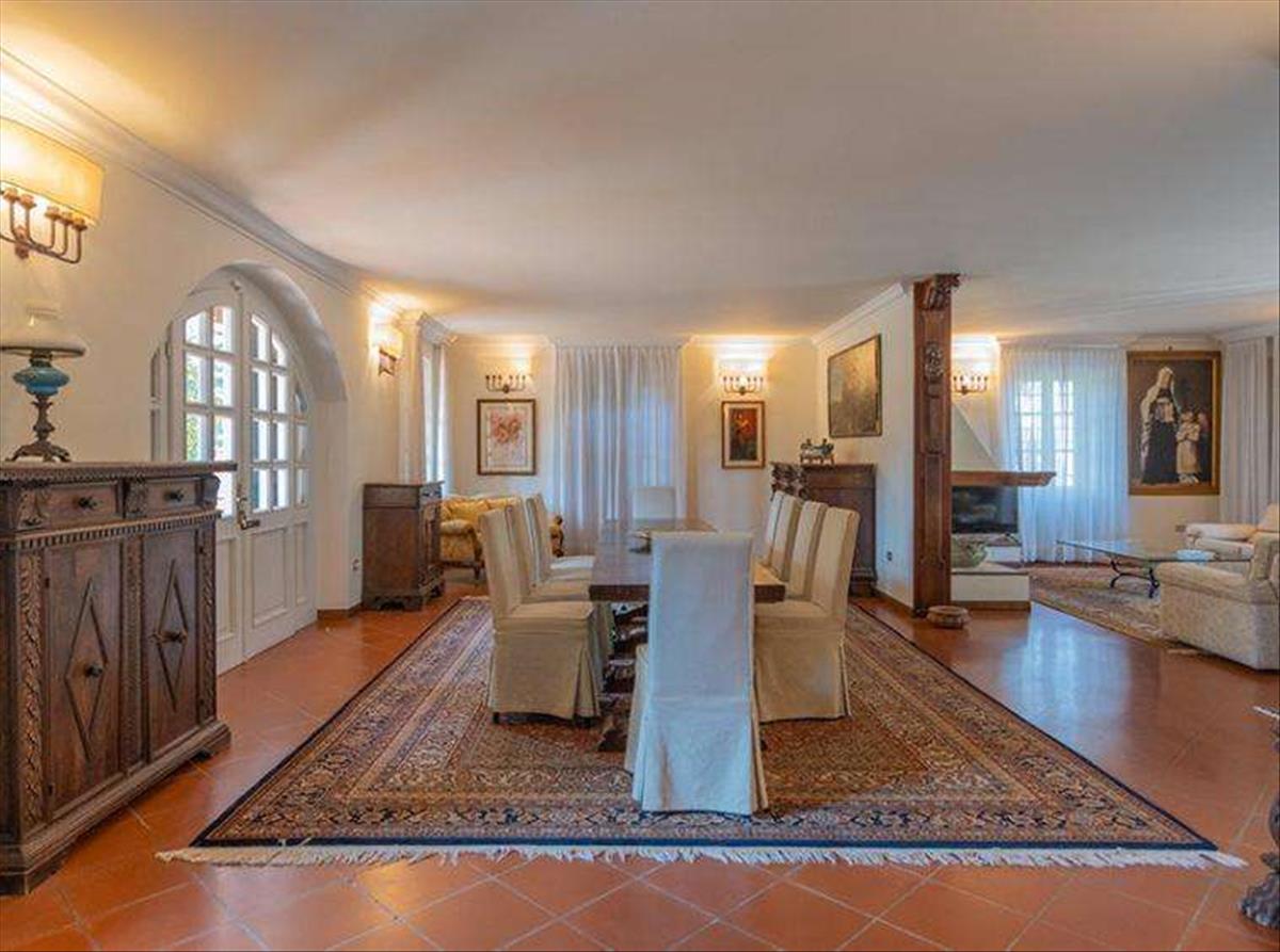 Földszint: Belépve a főbejáraton a kettős magasságú, impozáns bejárati tér fogad, fenséges lépcsőházzal, amely az alvóterületre vezet. A terem bal oldalán található a kényelmes nappali, a formális étkező, az olvasószoba és egy kandallóval berendezett ülőhely. Sok fény árad be az ablakokon és a francia ajtókon át. A bejárati hall jobb oldalán van egy otthonosabb tér: egy étkező, amely a tágas és teljesen felszerelt konyhához kapcsolódik, a tűzhely mellett egy kandalló és egy rendkívül tágas kamra. A konyha közvetlenül kapcsolódik a 80 m²-es portikóhoz, ahol kanapét és székekkel teli asztalt helyezhetsz el, hogy árnyékban élvezd az aperitifet vagy alfreszkó vacsorázz a barátaiddal. A tágas vendégfürdőszoba kiegészíti ezt az emeletet.