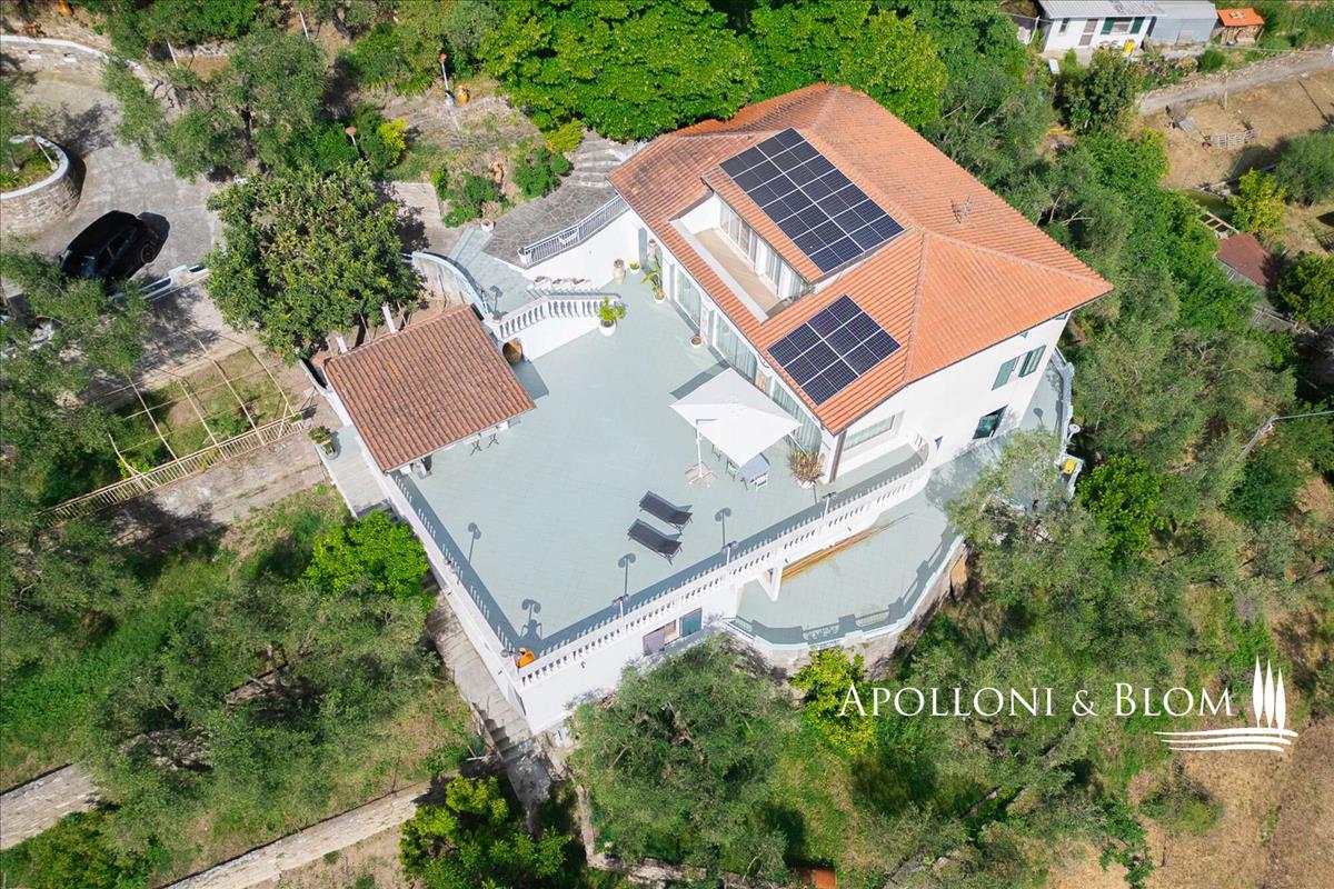 Riviera dei Fiori egyik legkiválóbb és legkülönfélébb részén található ez az ingatlan, amely körülbelül 9 000 m²-es buja olíva liget zöldjében fekszik.