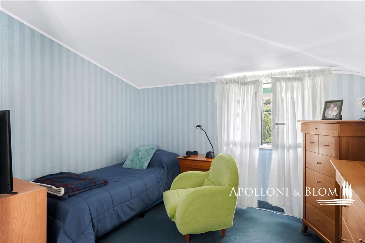 A második emeleten három hálószoba, két fürdőszoba és erkély nyújt nyitott kilátást a tengerre és a Liguriai tájra.