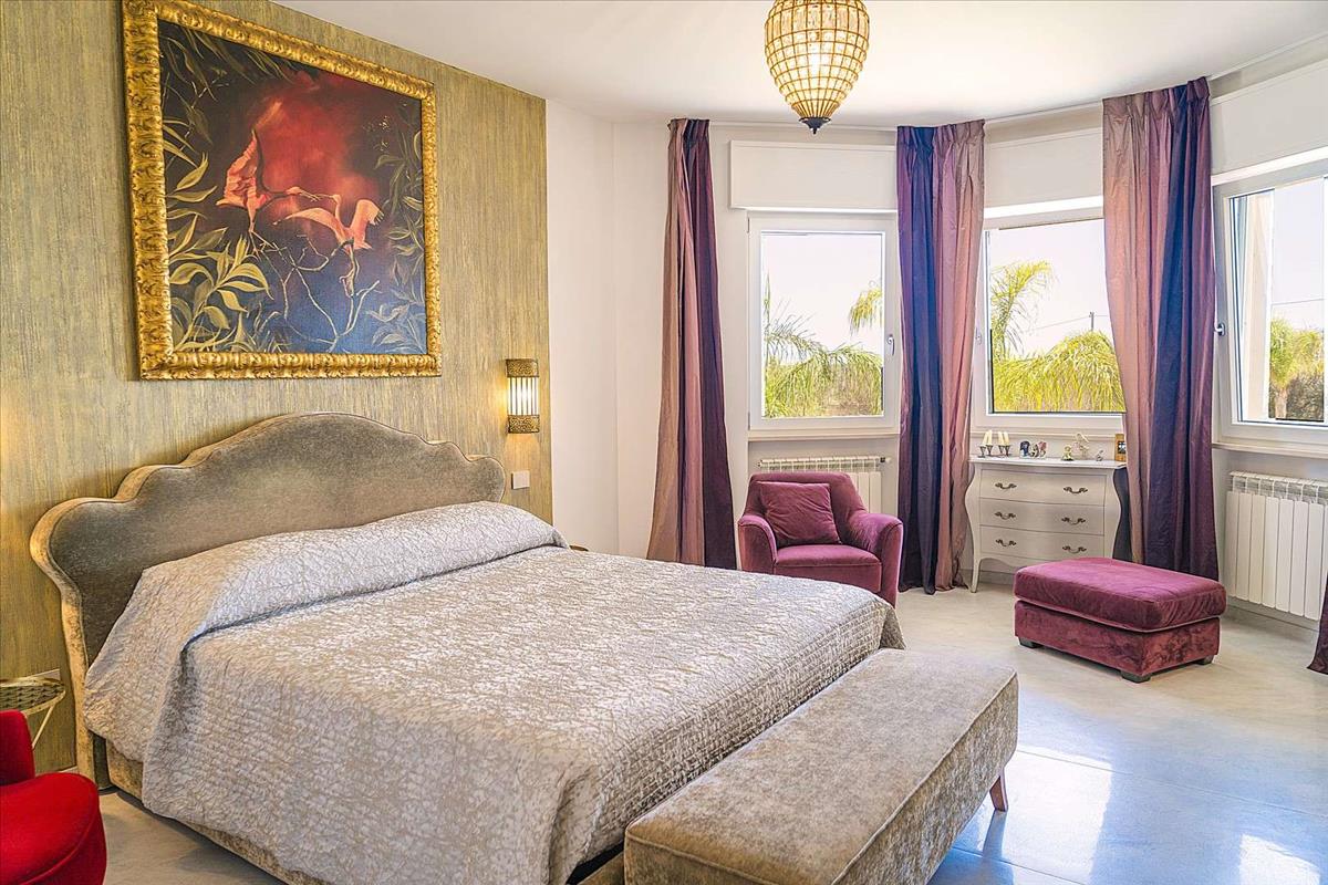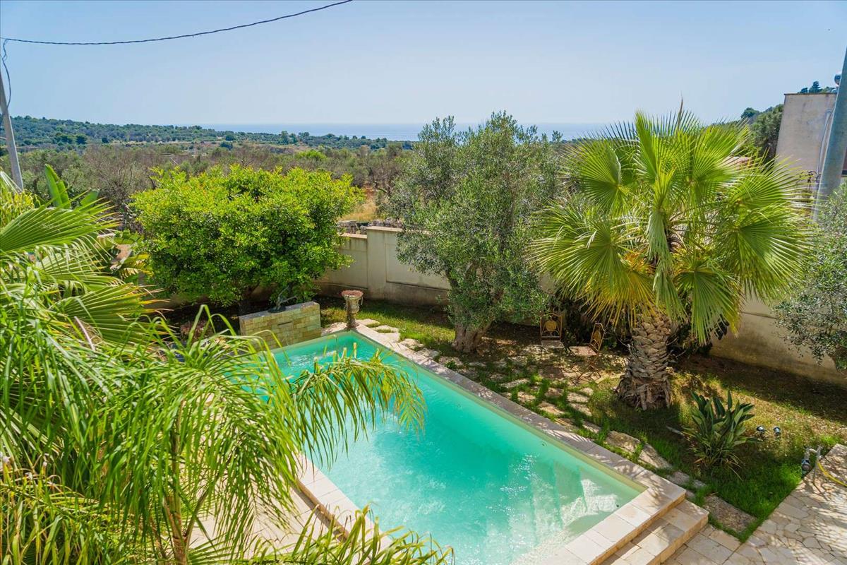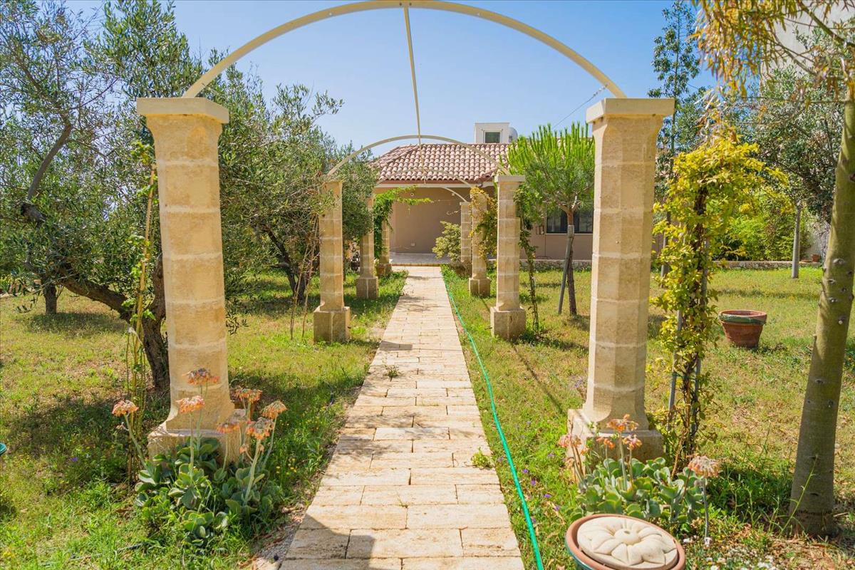 Puglia déli részén, gyalog mindössze 900 méterre a városközponttól, a tengertől érkező varjú hangjára emlékeztető hangulatban ez a kiemelkedő ingatlan egyedülálló sármával és karakterével büszkélkedhet. Ez a villa egy kis dombon helyezkedik el, ahonnan csodálatos kilátás nyílik a birtokra, és világos, tágas beltérrel rendelkezik.