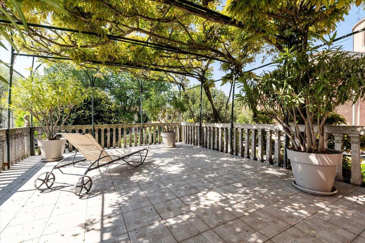 Ez az elegáns ingatlan terasszal és kerttel a Lido di Venezia egyik legkeresettebb területén, a Città Giardino részen található, és rád vár.